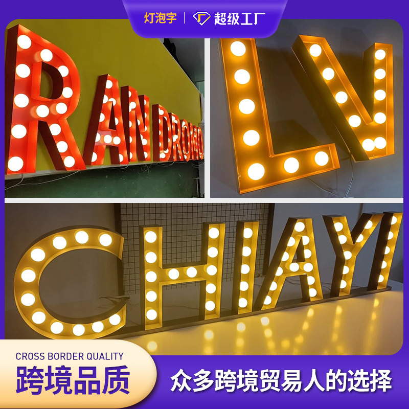 クロスボーダー発光電球文字サインカスタマイズされた LED 大型床置き英語英数字電球文字広告ロゴ