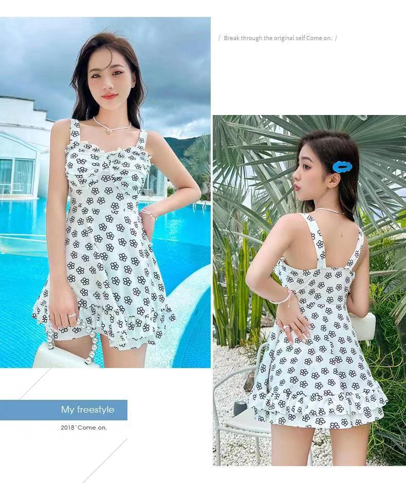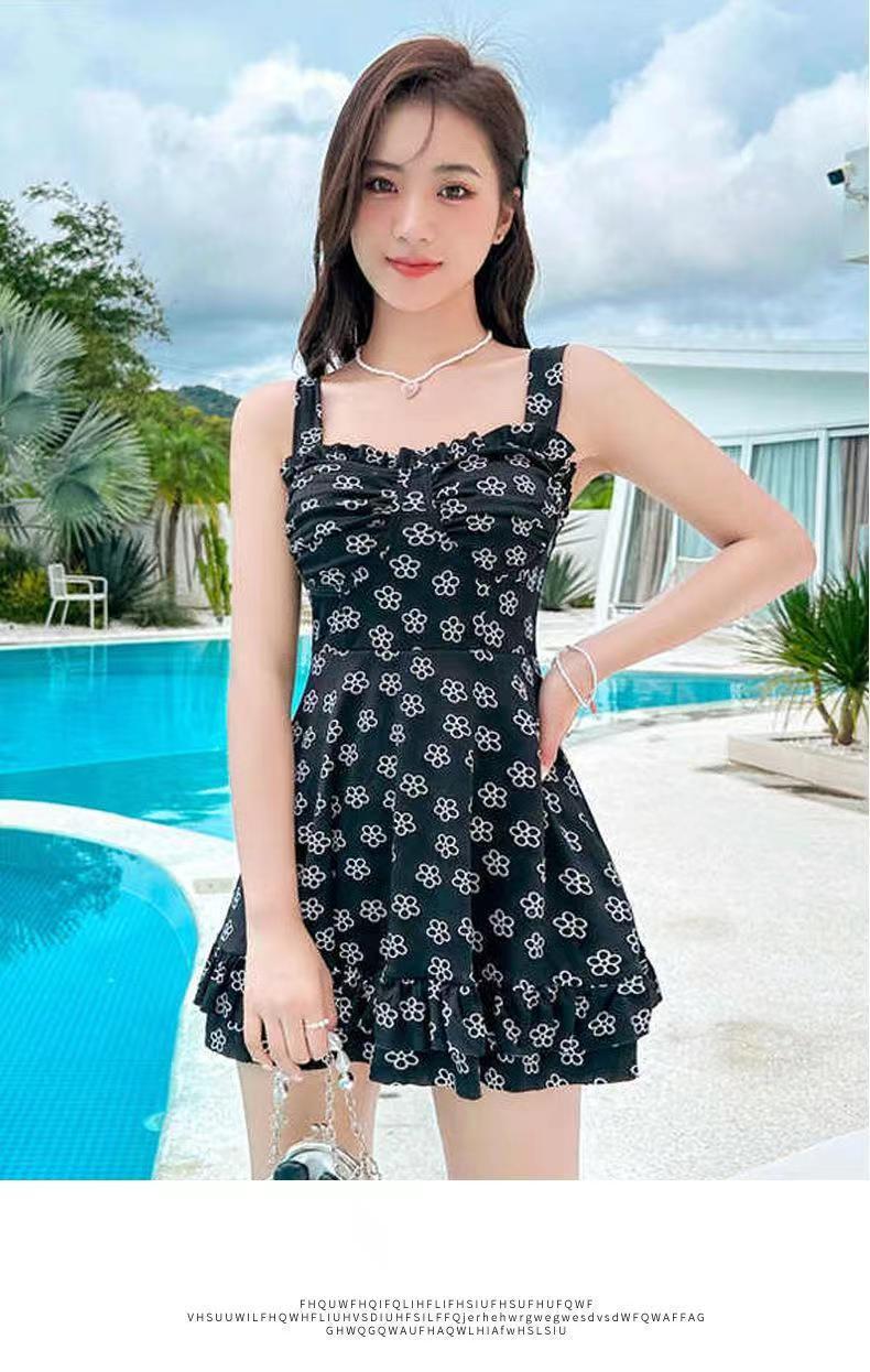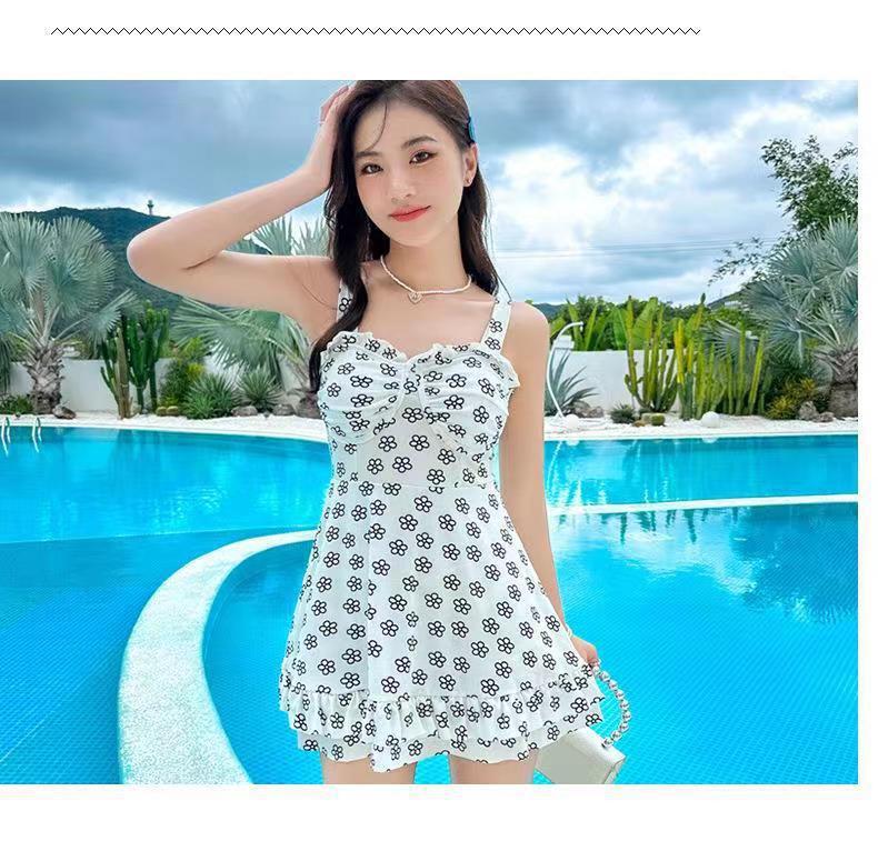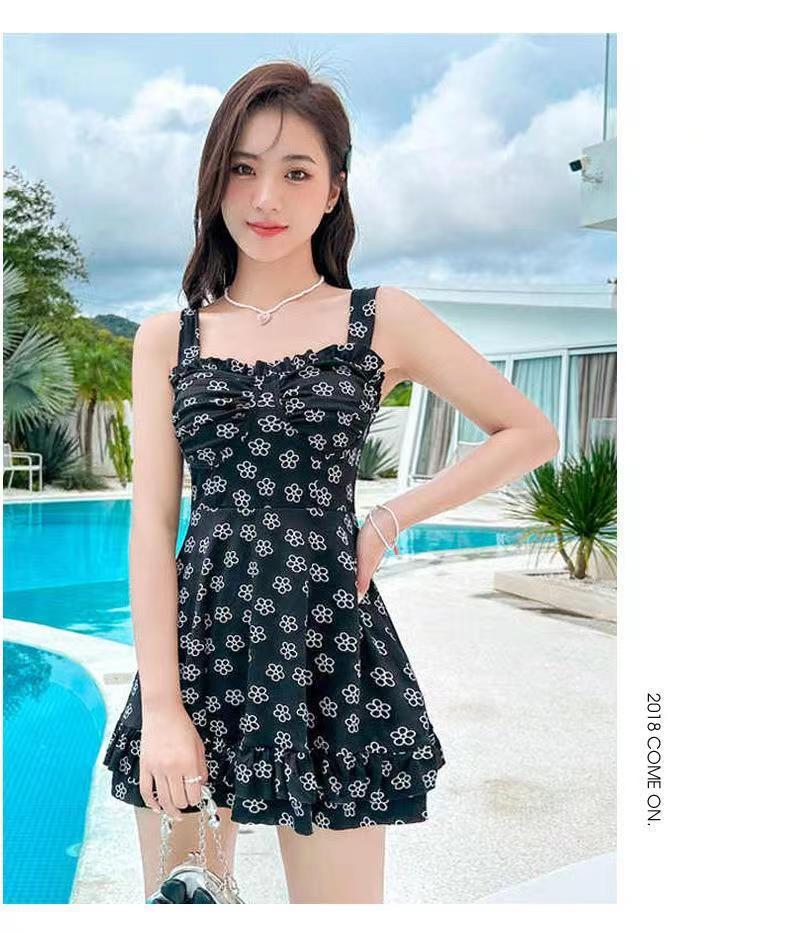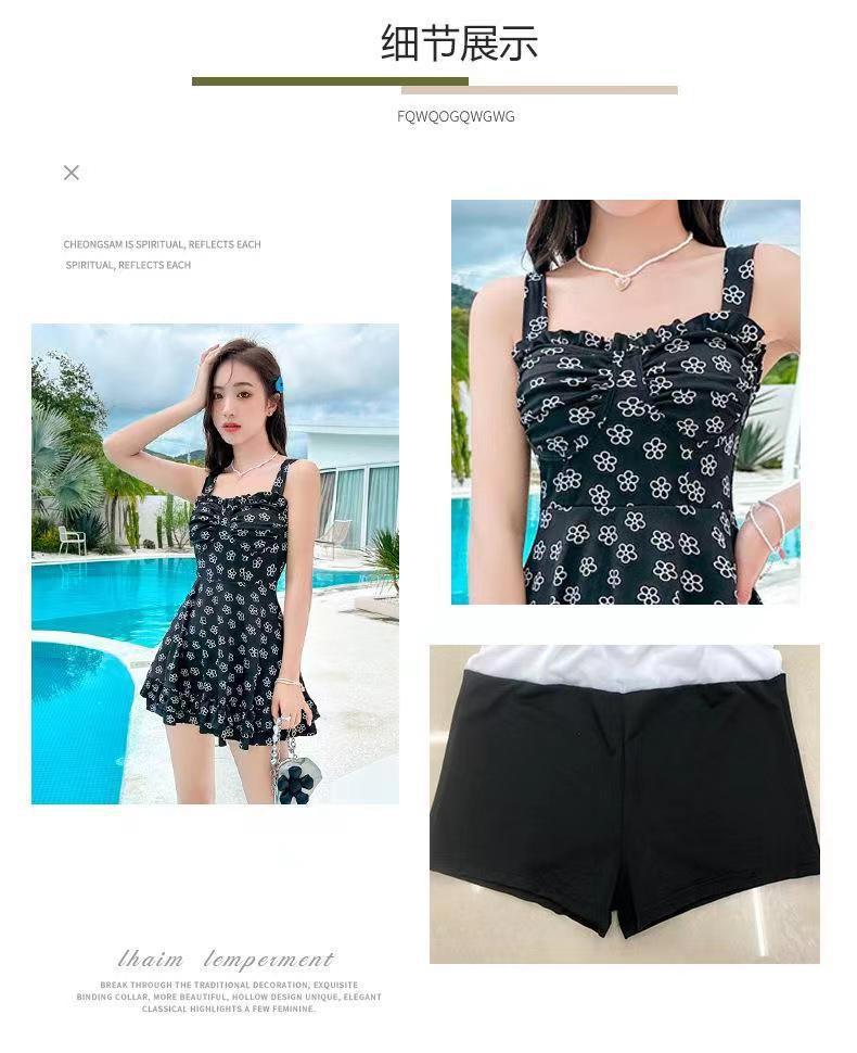水着女性温泉高級感ワンピース水着肩砕花スカート式遮肉保守純欲水着メーカー