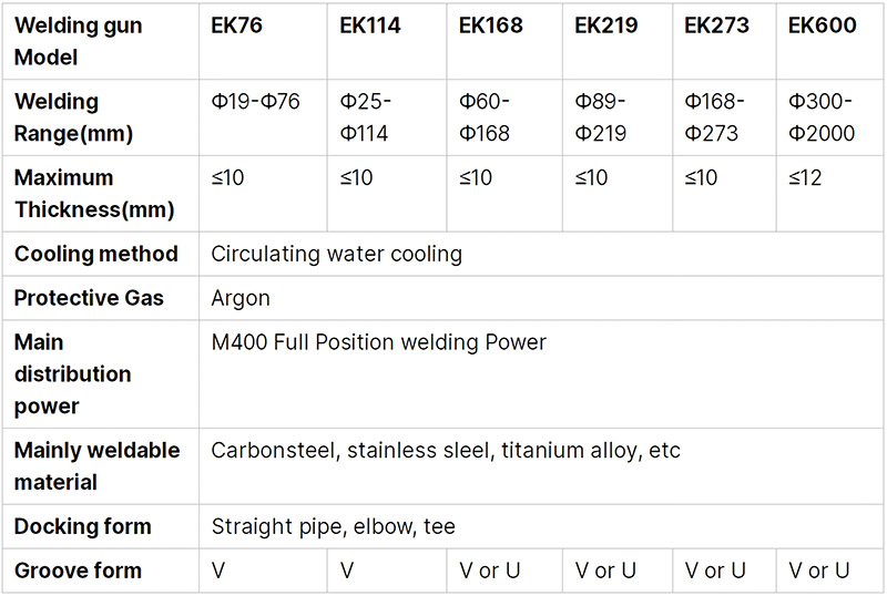 Pipe and tube welding system consists of M400 welding power source and open welding head. This welding gun is suitable for general form pipe to pipe automated welding. There are two options: self melting or wire filling. Mainly used in chemical, food, engineering installation, boilers, or ship nuclear power, etc..The M400 inverter welding power supply consists of a PLC control system, an imported 400 inverter core, and a cooling water tank. The equipment is progressiveness, digital and easy to operate.