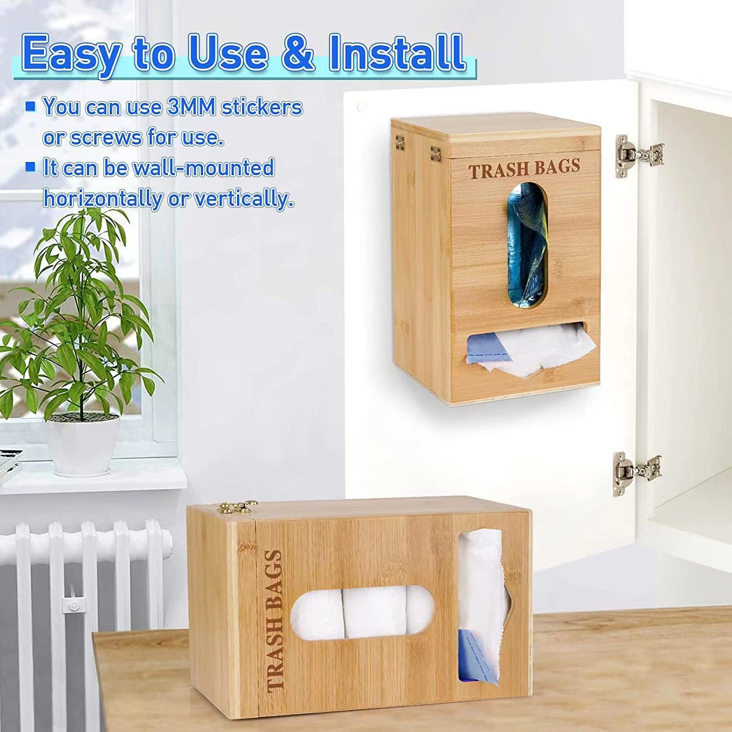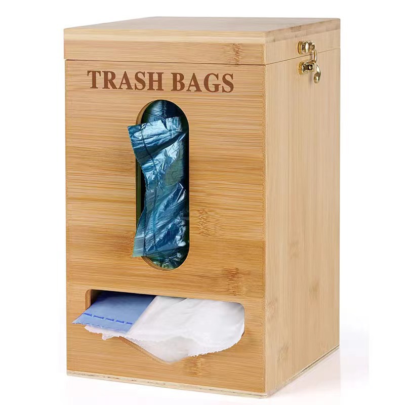 ラップ収納ボックス竹木製家庭用キッチン収納ボックス吊り式壁ゴミ袋木製収納ボックス