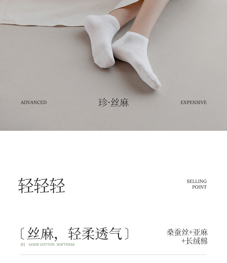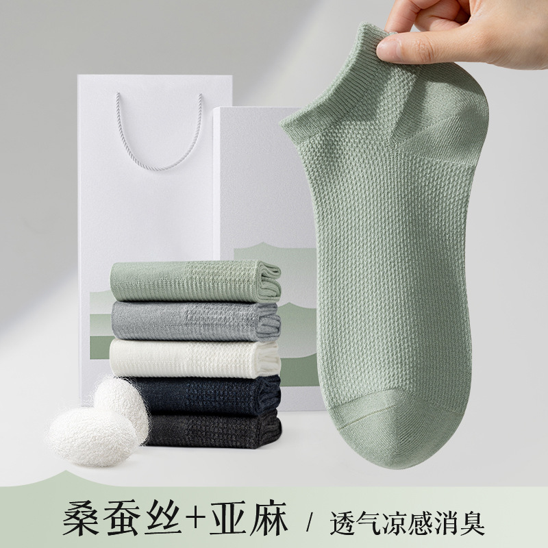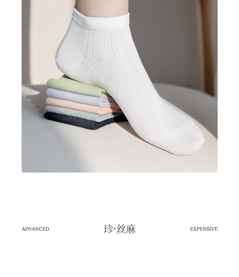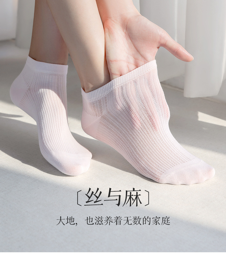【マルベリーシルク+リネン】Zhuji ソックス 卸売 ショートソックス 夏用 薄手 メッシュ 抗菌 吸汗消臭 涼しい