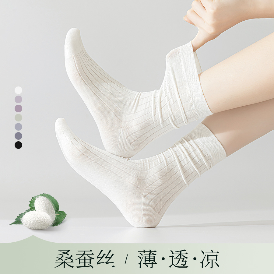 諸曁市靴下業桑蚕糸女性用パイルソックス春夏薄手ミドル丈ソックス通気性吸汗性超薄ロングソックス卸売