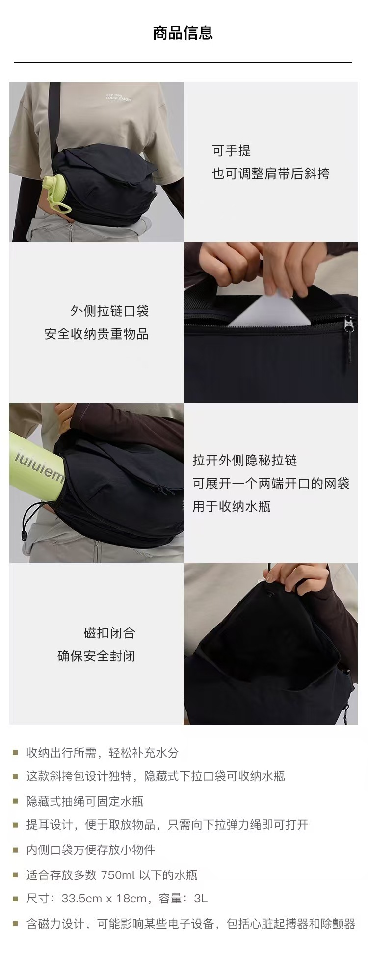 新品Luマグネットバッグ2025curvedカジュアルスポーツ胸バッグウエストバッグ大容量高颜値シングルショルダーバッグ