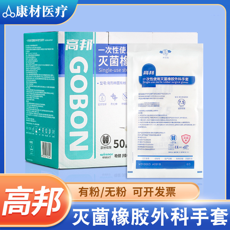 桂林高邦外科手袋医療用ラテックス手袋使い捨てゴム粉/粉なし検査手術手袋