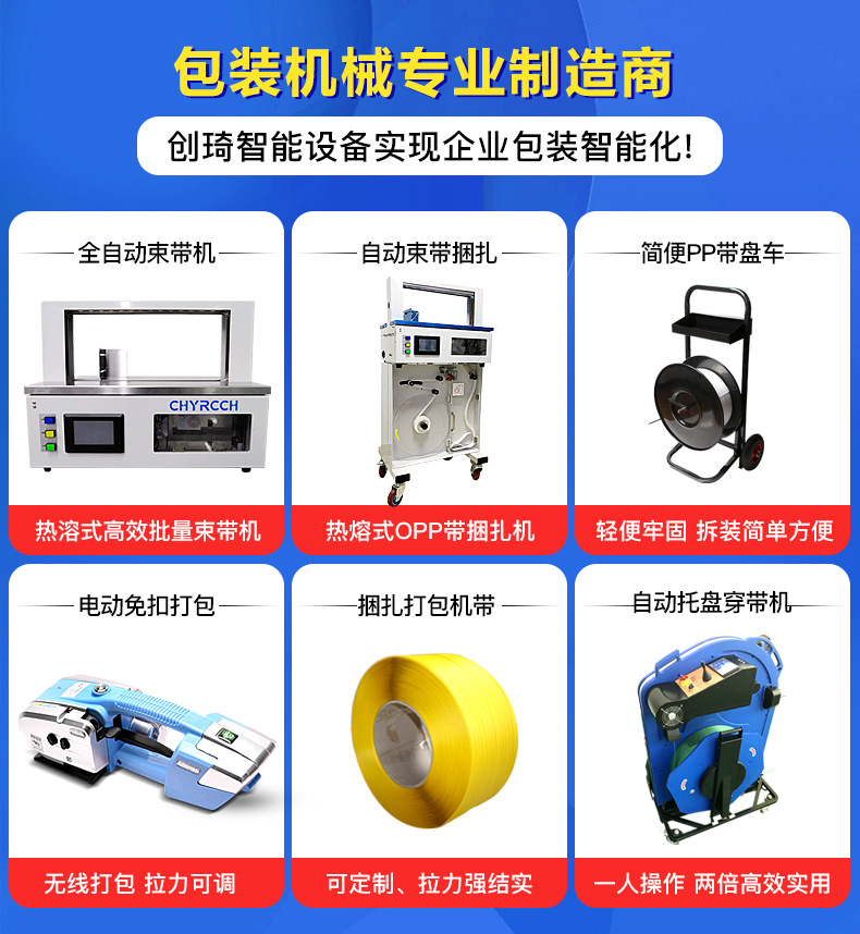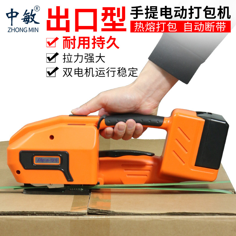 能手提式充电打包机又称捆包机、打带机或捆扎机,是使用捆扎带捆扎产品或包装件,然后收紧并将两端通过发热烫头热融粘接方式结合。打包机的功能是加固包装物品的,使物品在搬运过程中、贮存中不因捆扎不牢而散落、同时还应捆扎整齐美观