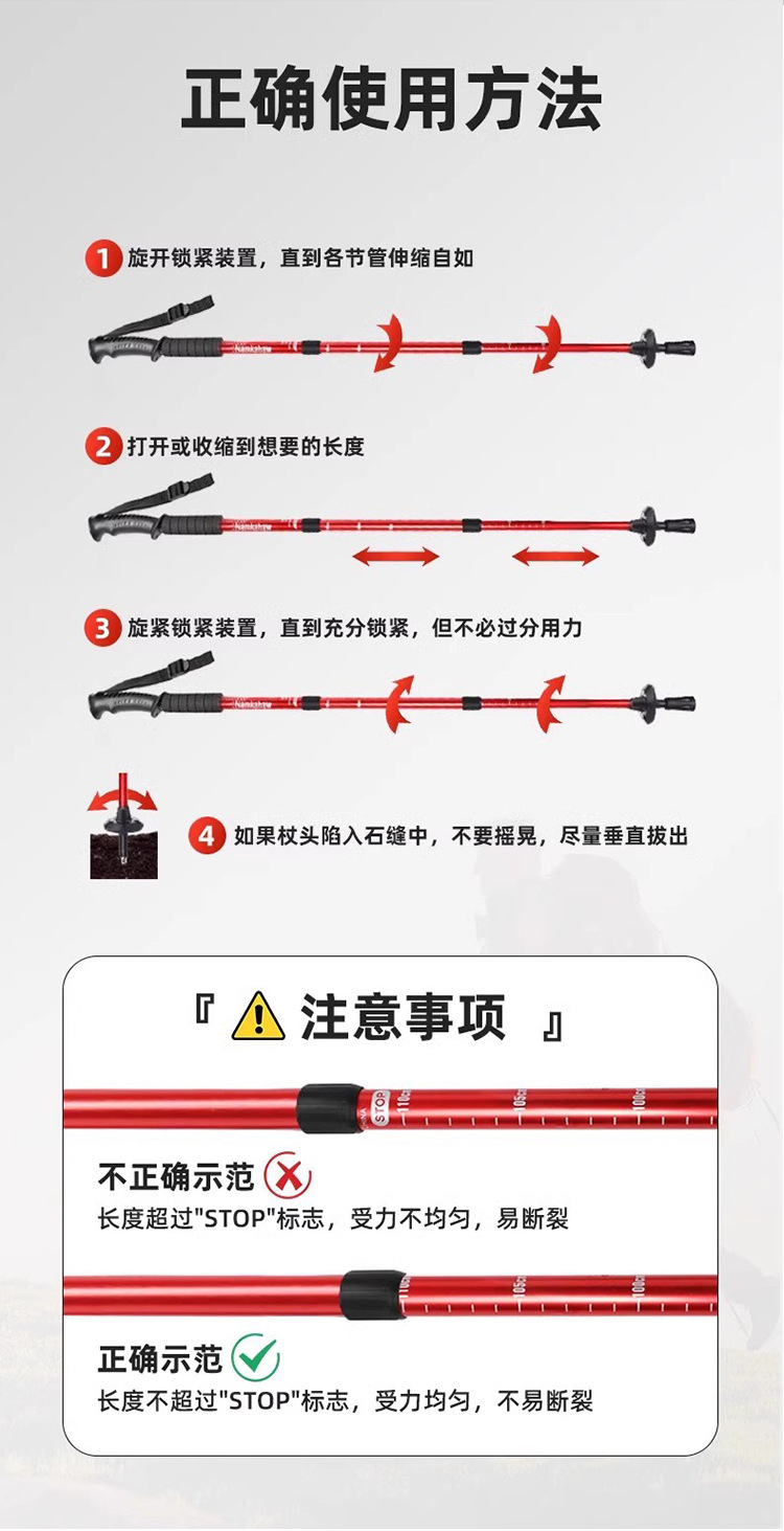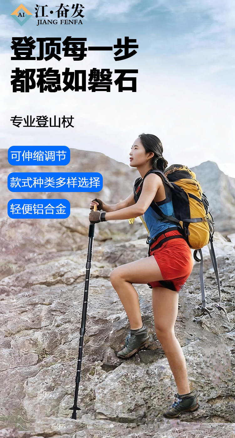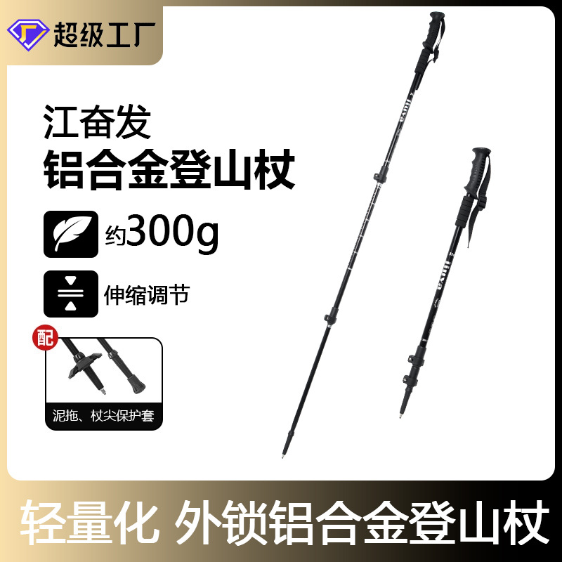 江奮発アウトドア登山杖観光登山調整可能伸縮ステッキ徒歩クロスカントリー四節アルミ合金