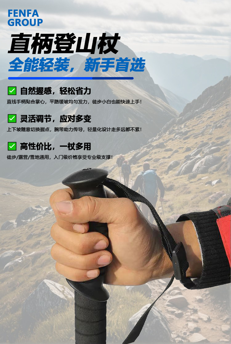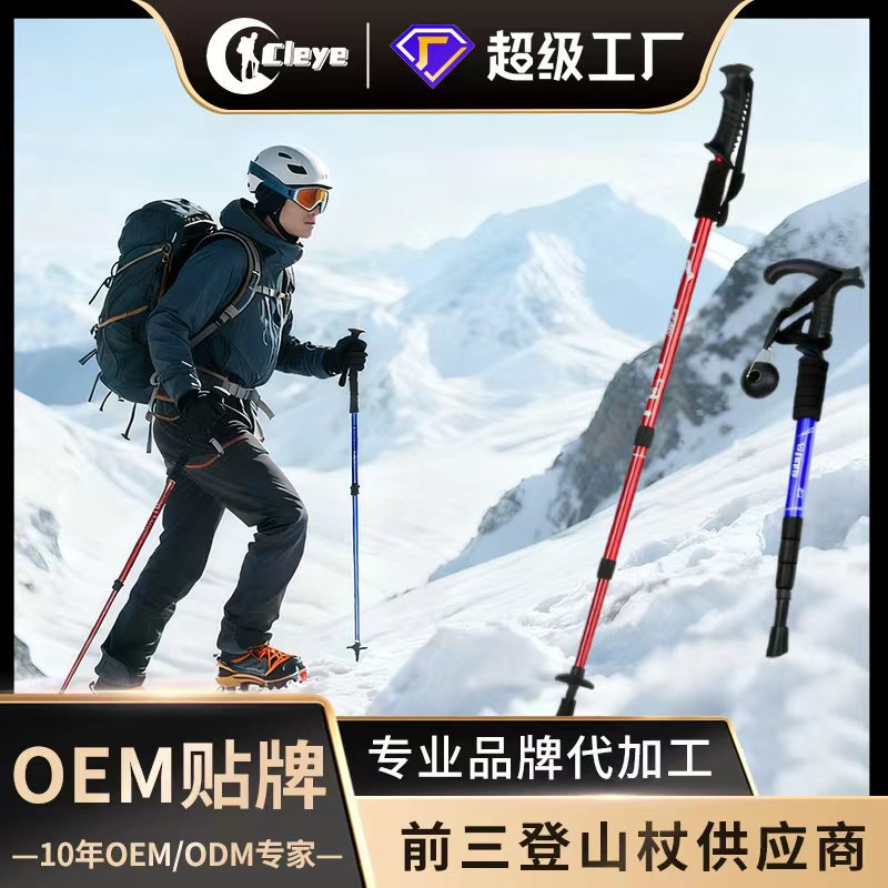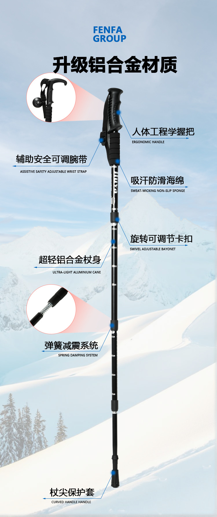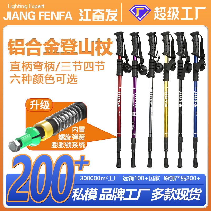 【工厂】跨境登山杖手杖滑雪超轻伸缩折叠徒步杆棍拐杖爬山铝合金