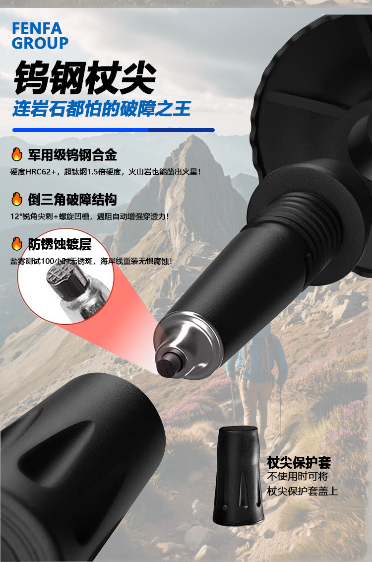 7075アルミ合金登山杖徒歩折り畳み杖専門屋外登山装備超軽量携帯伸縮金