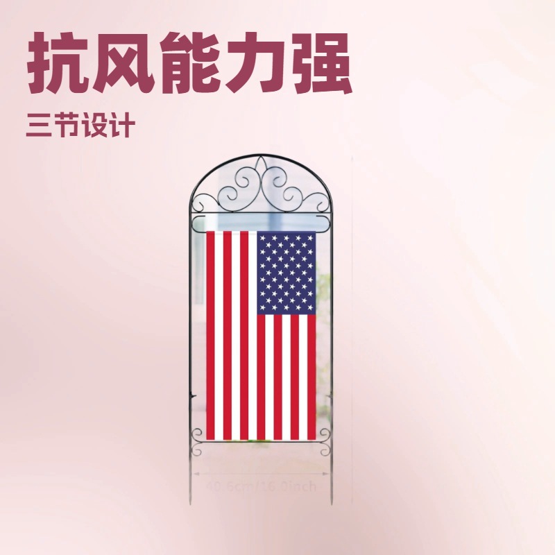 クロスボーダーアメリカガーデンフラッグスタンドグラウンドペイントガーデンランプアイアンブラックフックフラッグポール防水装飾フラグ