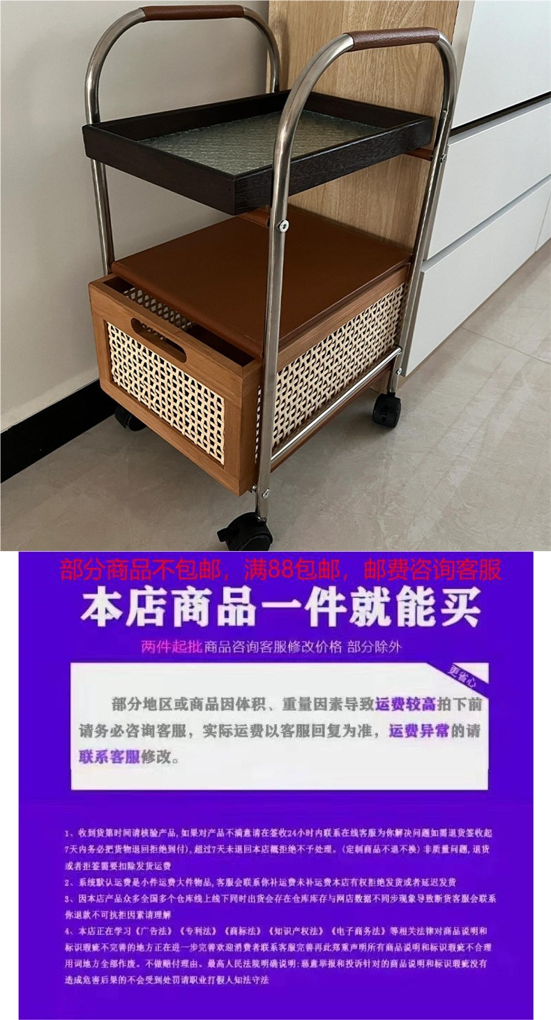 中古の実木の辺のいくつかの移動可能なワゴン車のソファーの辺の棚の物置棚の客間のお茶の棚の藤は編んで寂しいです。