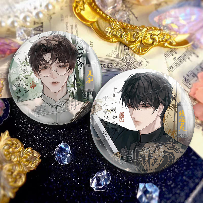 墓を盗むノートは二重に輝いています。呉邪張起霊黒盲人解雨臣75mm周辺谷子ブリキのブローチです。