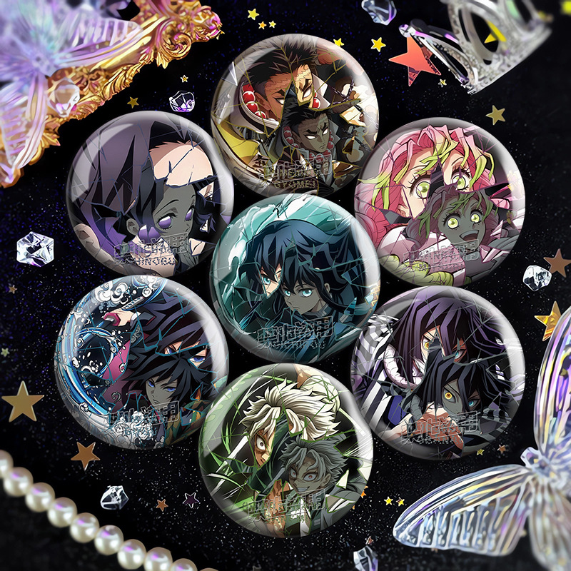 鬼灭之刃同人原创二次元周边双闪吧唧九柱破碎反光马口铁谷子徽章