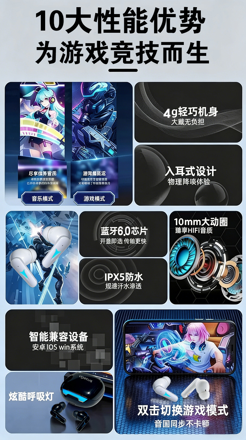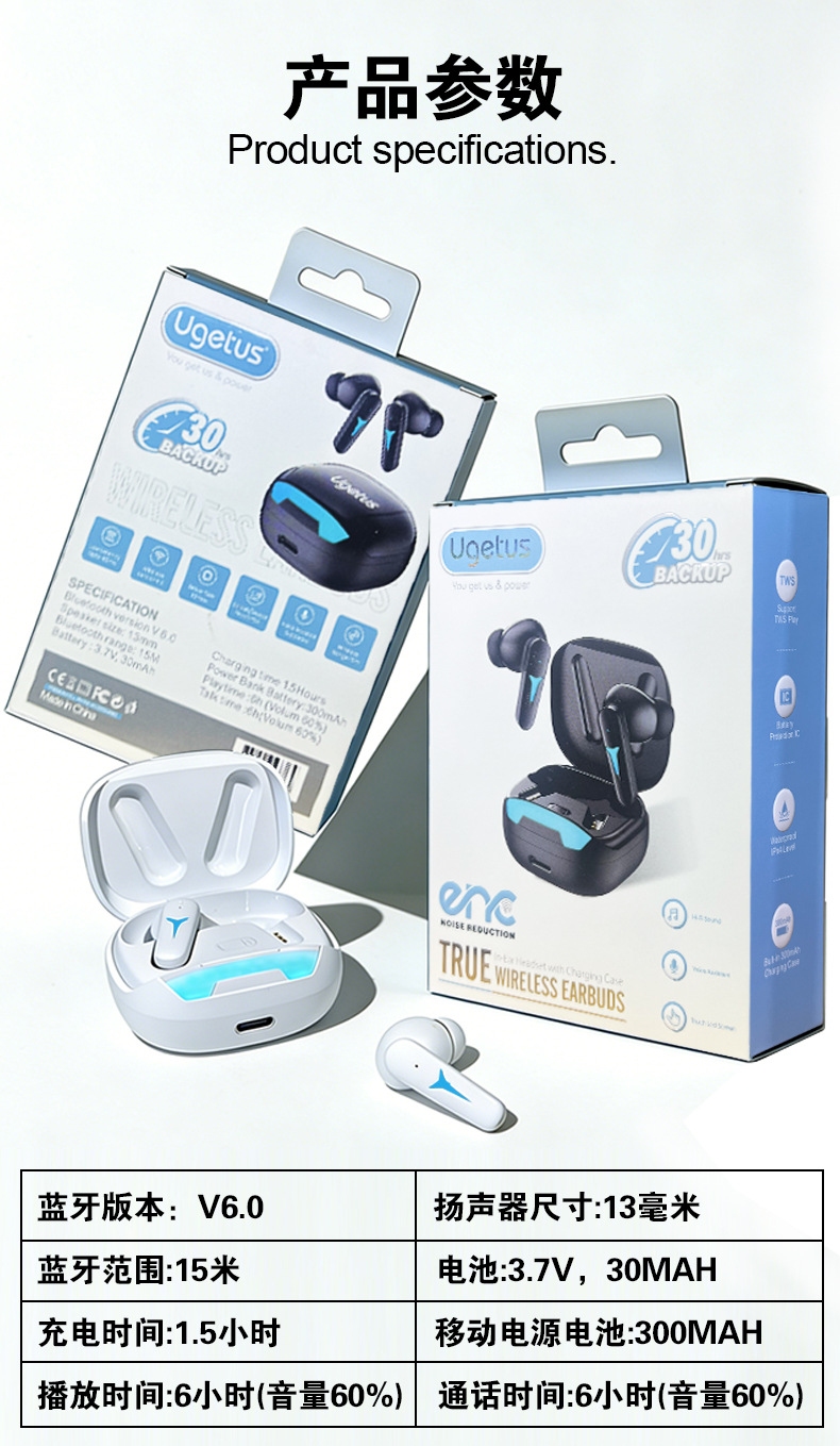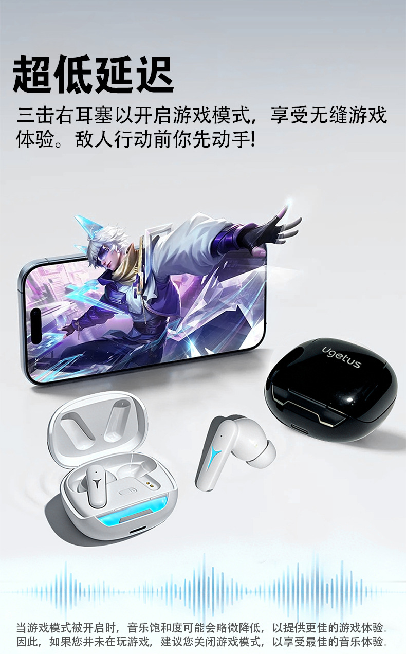 クロスボーダー爆金Uget-001私模電ゲームヘッドホンbluetooth無線高颜値帯充電倉庫0遅延