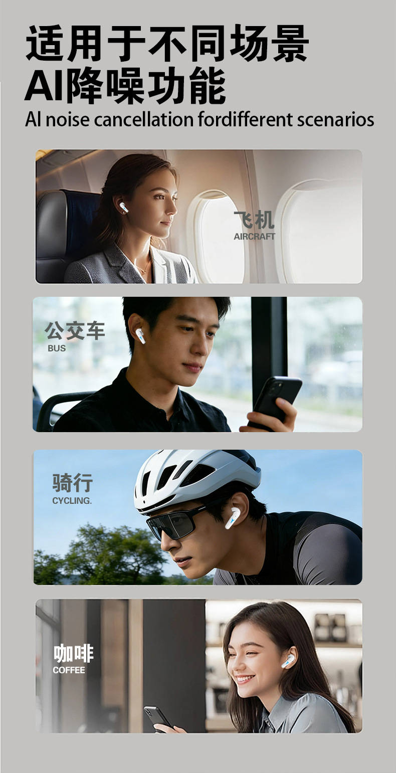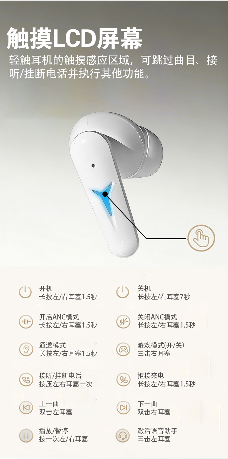 跨境AirMAX蓝牙耳机入耳式LCD触摸彩屏降噪透明款长续航运动耳机