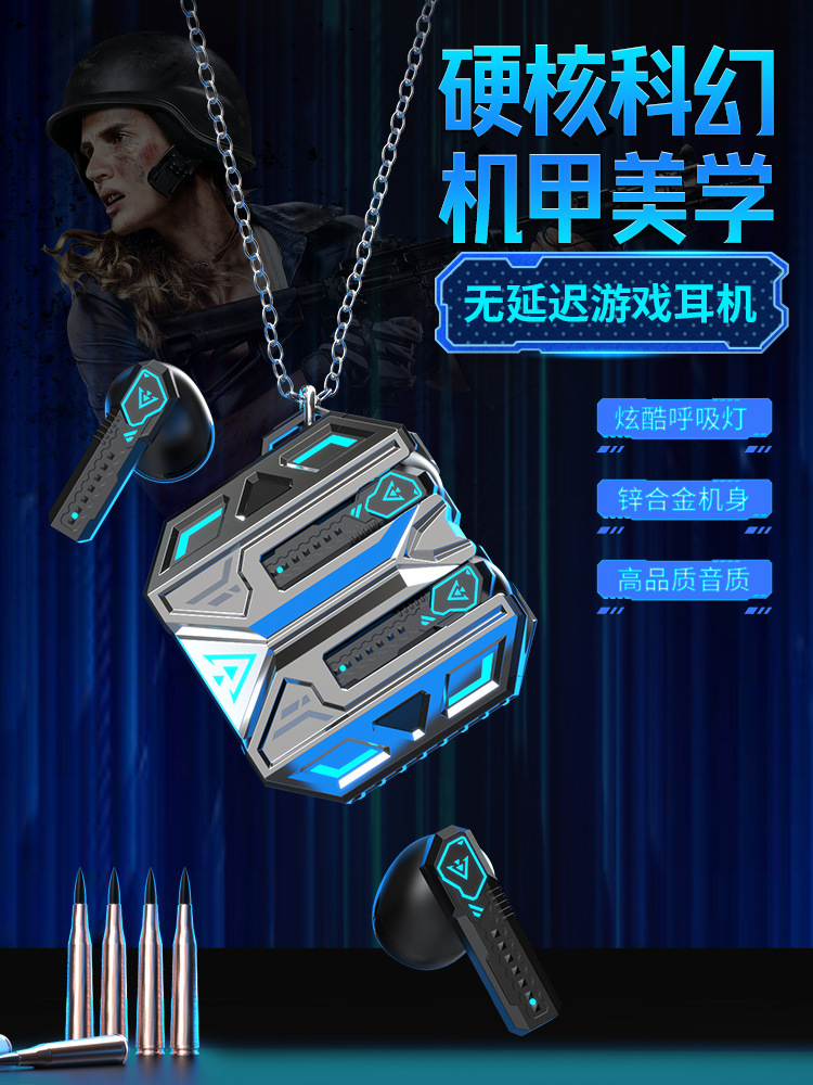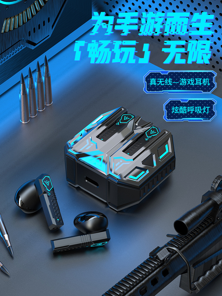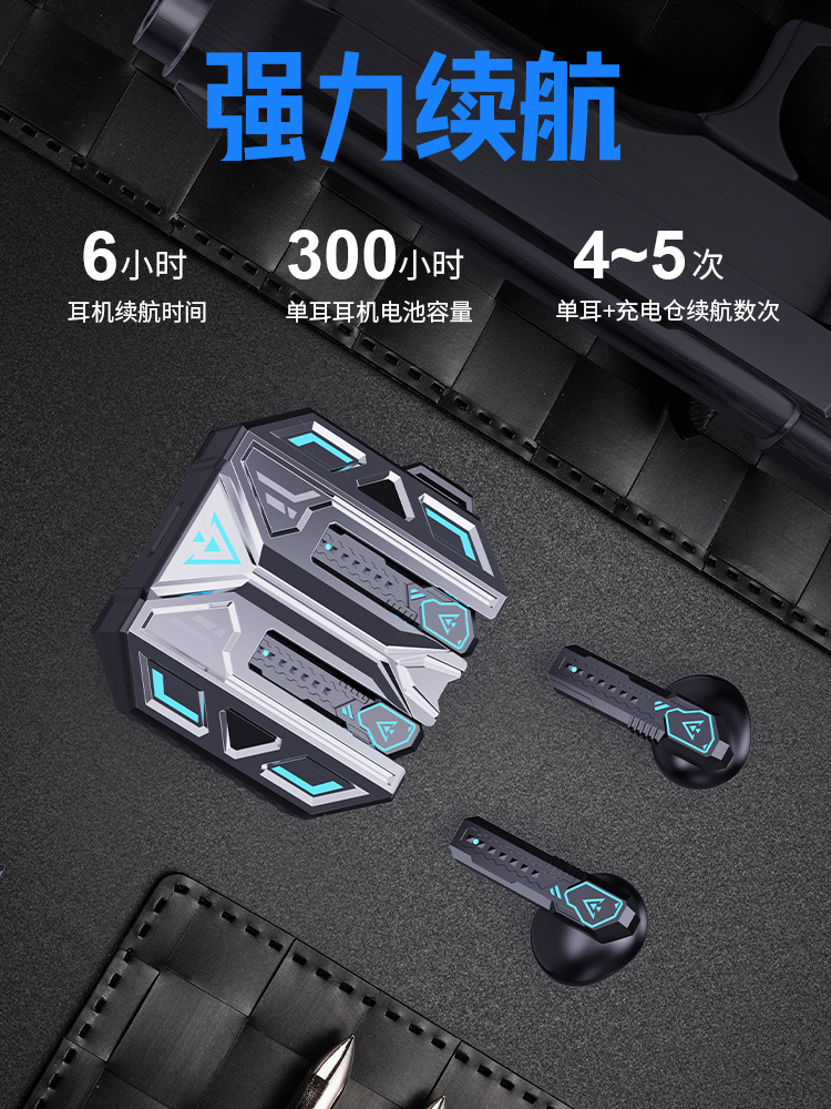 X45电竞游戏蓝牙耳机无线入耳式低延迟炫酷机甲风双模式通用降噪