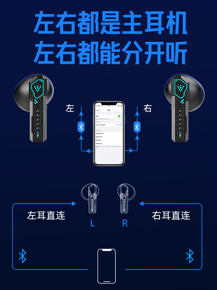 Lianjia Bluetooth ヘッドセット、低遅延インイヤースポーツ新しいワイヤレス GM2pro ゲーム Bluetooth ヘッドセットに適しています。