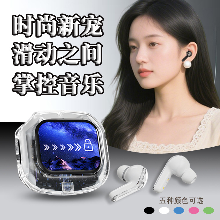 新しいフルカラースクリーンbluetoothイヤホン透明倉庫タイプ無線入耳式TWSタッチパネルデジタルディスプレイ運動イヤホン