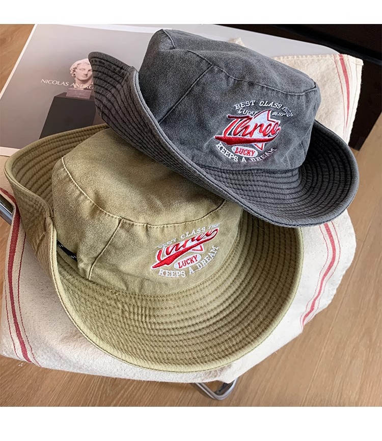 レトロな文字刺繍西部カウボーイ帽女性屋外日焼け止め登山帽の大きなつばに漁師の帽子がついている