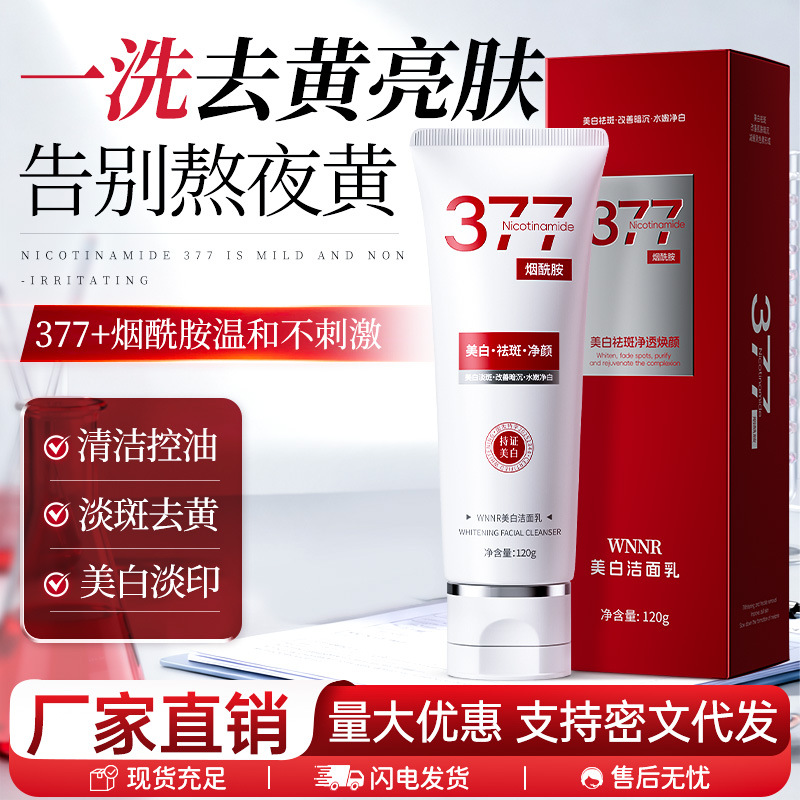 377烟酰胺美白祛斑洗面奶改善肤色暗沉深层清洁控油美白洁面乳女