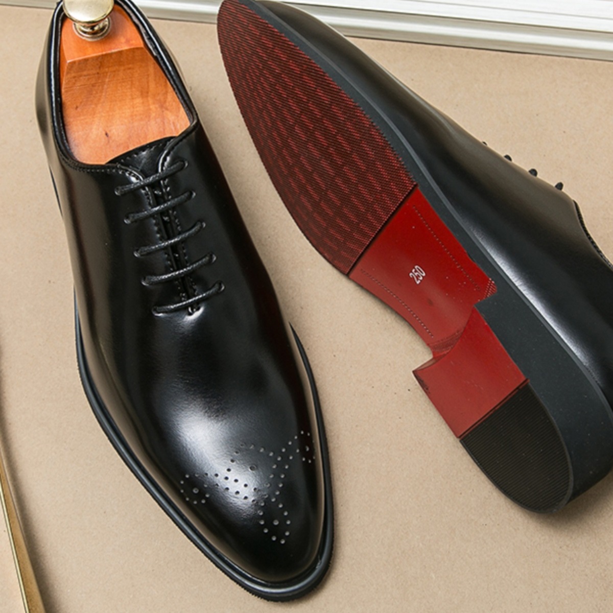 红底皮鞋男面试真皮透气商务男士休闲德比鞋新郎大码正装结婚鞋子