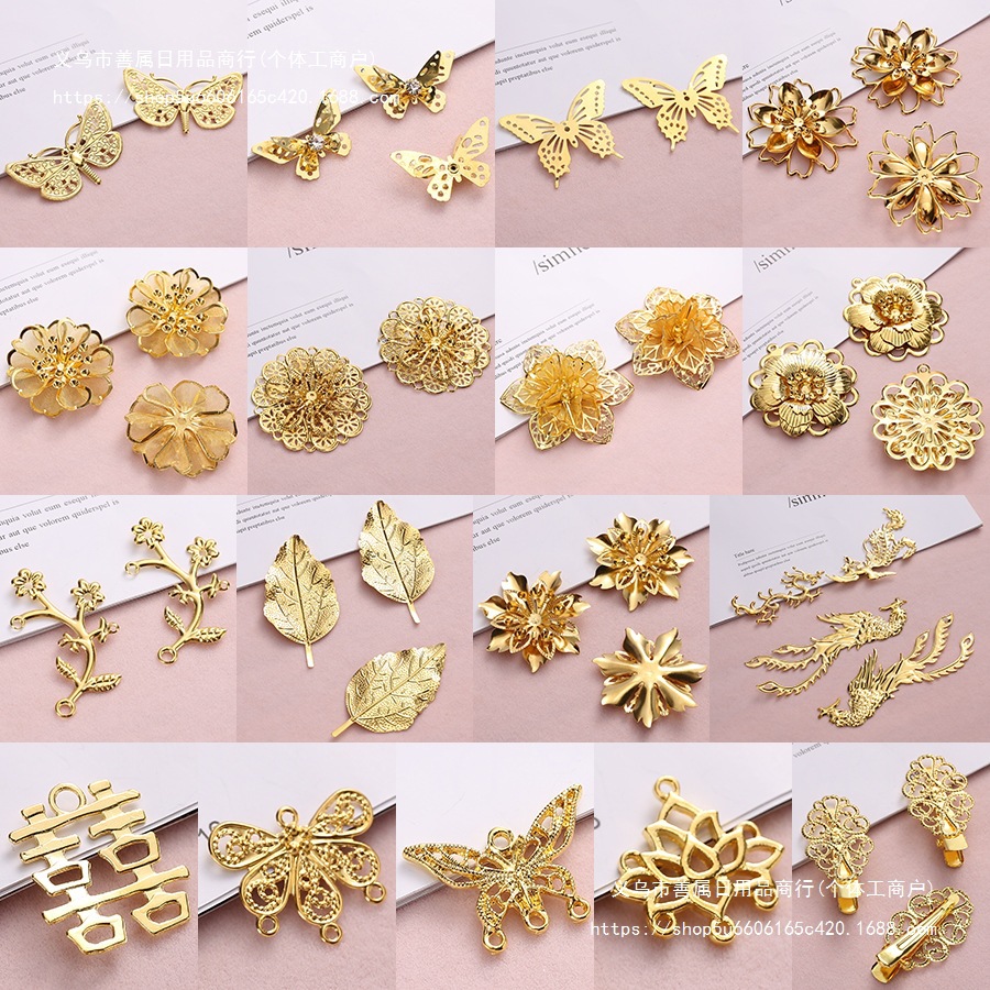 金属鉄花片立体宮花龍鳳蝶吊り片接続手作りdiy古風頭飾りヘアピン材料