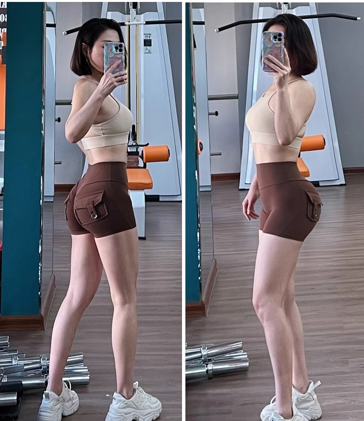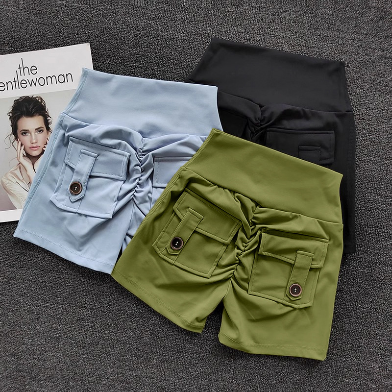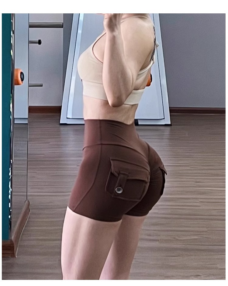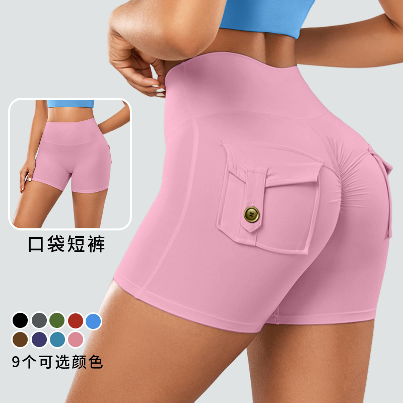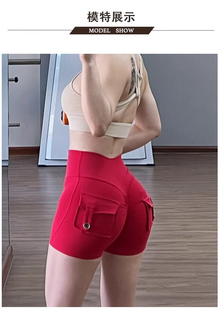 国境を越えて爆発した欧米の蜜桃工装ポケットヨガパンツ裸感高腰運動ホットパンツは三分ズボンの女性に乗る