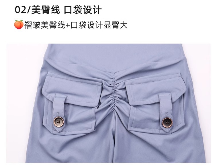 工装ポケット蜜桃尻ヨガパンツ欧米ギャル高腰提尻ボタン通気ランニングフィットネスヨガパンツ