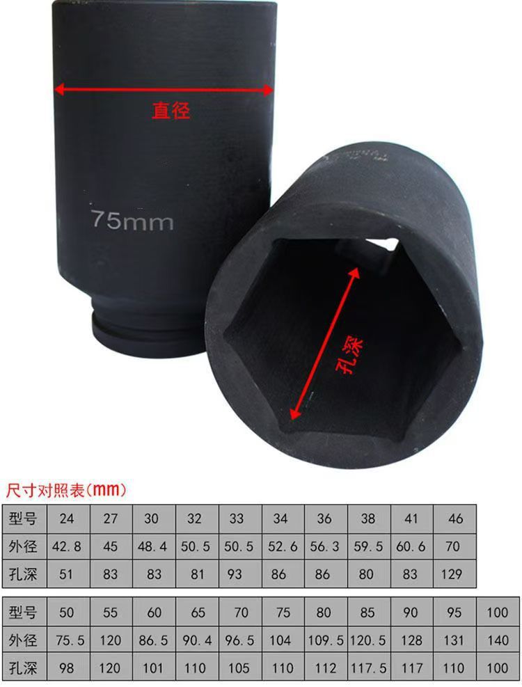 拓森工具3/4風砲スリーブ自動車修理80延長六角スリーブ重型四方気動風砲スリーブヘッド