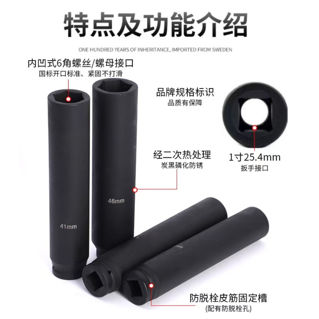 加厚重型风炮套筒大飞气动套筒六角加长套头电动扳手套筒铬钼钢