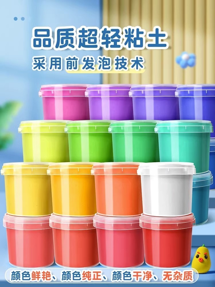 粘土の白い粘土の柔らかい泥のバケツに子供の泥を入れて大包装します。