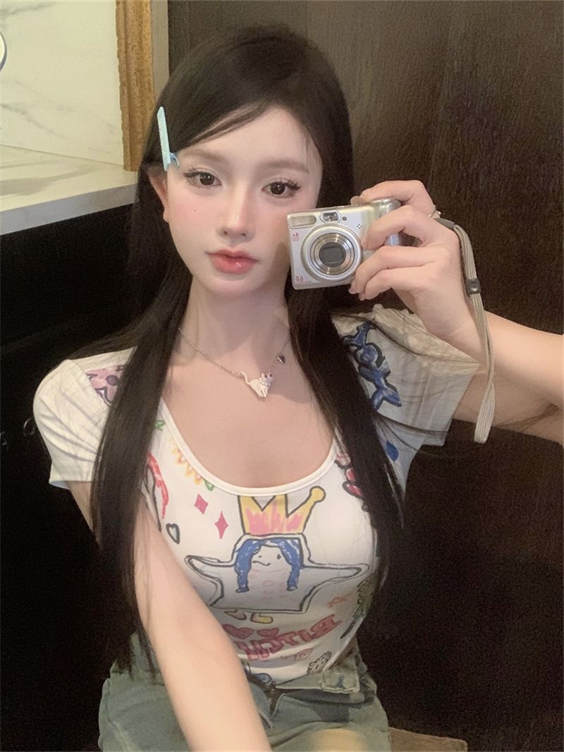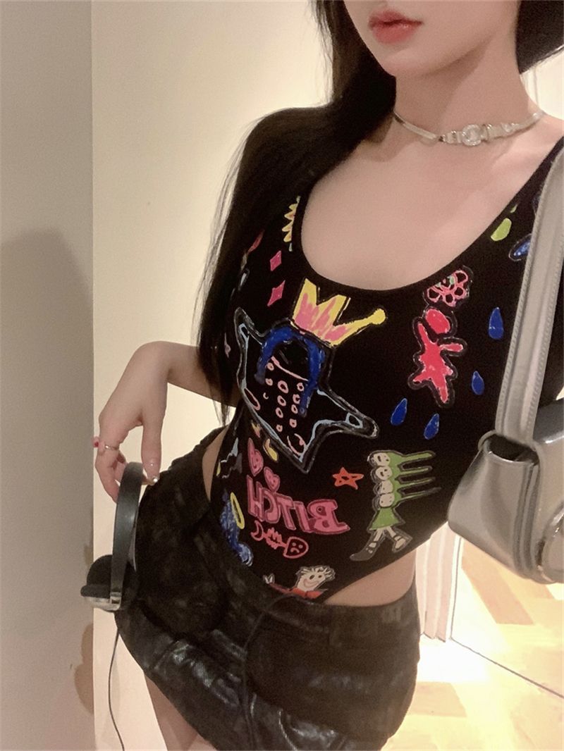 セクシーなギャル風の漫画のプリントのワンピースの女装の夏のデザイン感は背中を見せて身を修めるのがやせている半袖の上着の潮を現します。