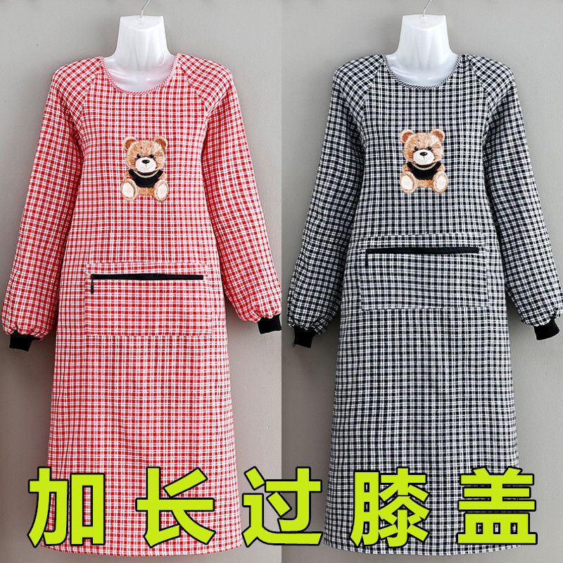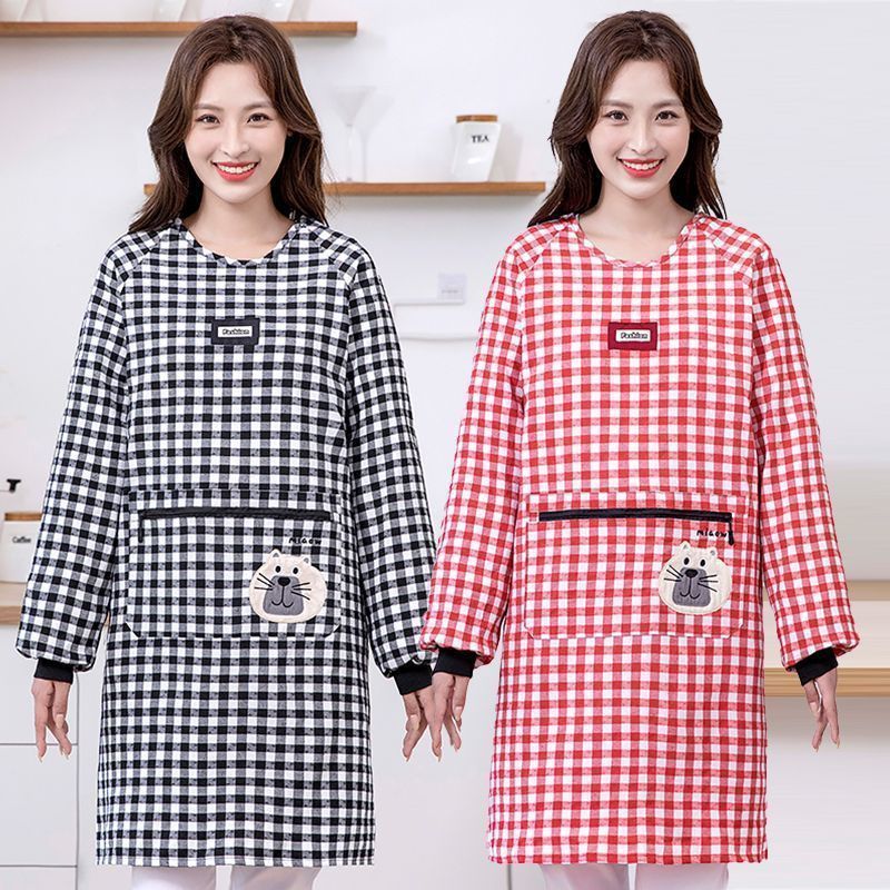 新しい保温カバーとベルベット防水防油カバーを卸売りして腰キッチン長袖エプロン作業服汚れに強い女性