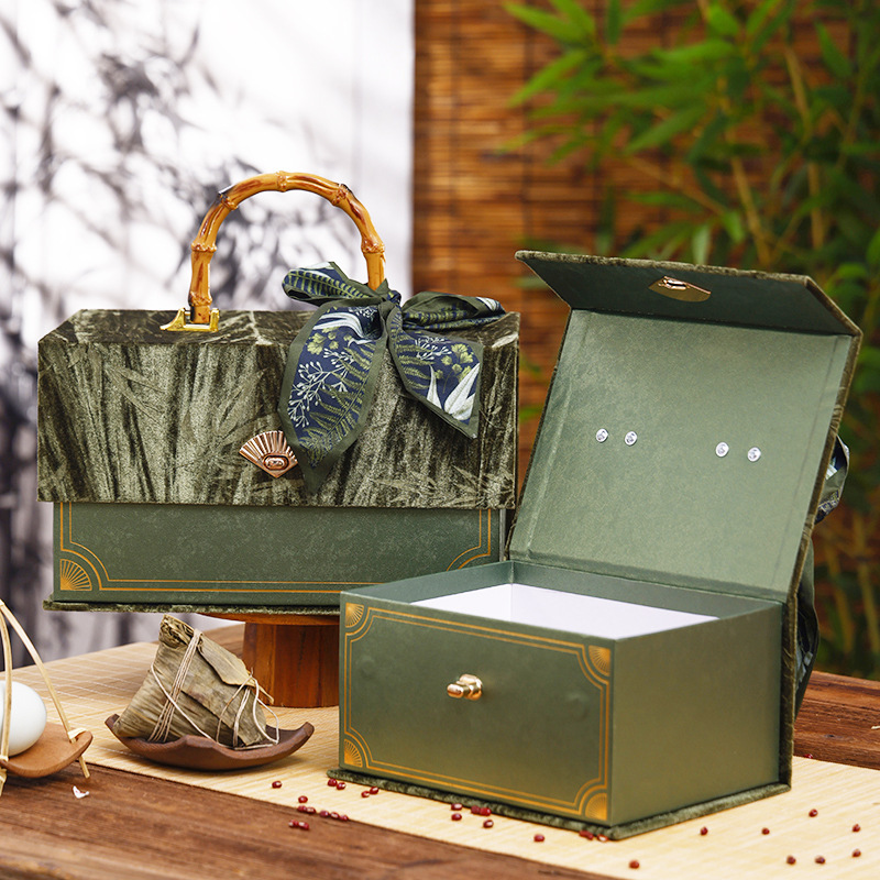 礼物盒结婚伴手礼盒绿色高级感绒布手提盒竹节结婚国风婚庆礼盒