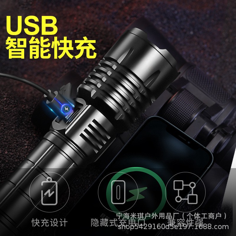 強力な光充電式屋外高輝度長距離レーザー 26650 リチウム電池小型戦術的な強力な光懐中電灯に特別に在庫あり