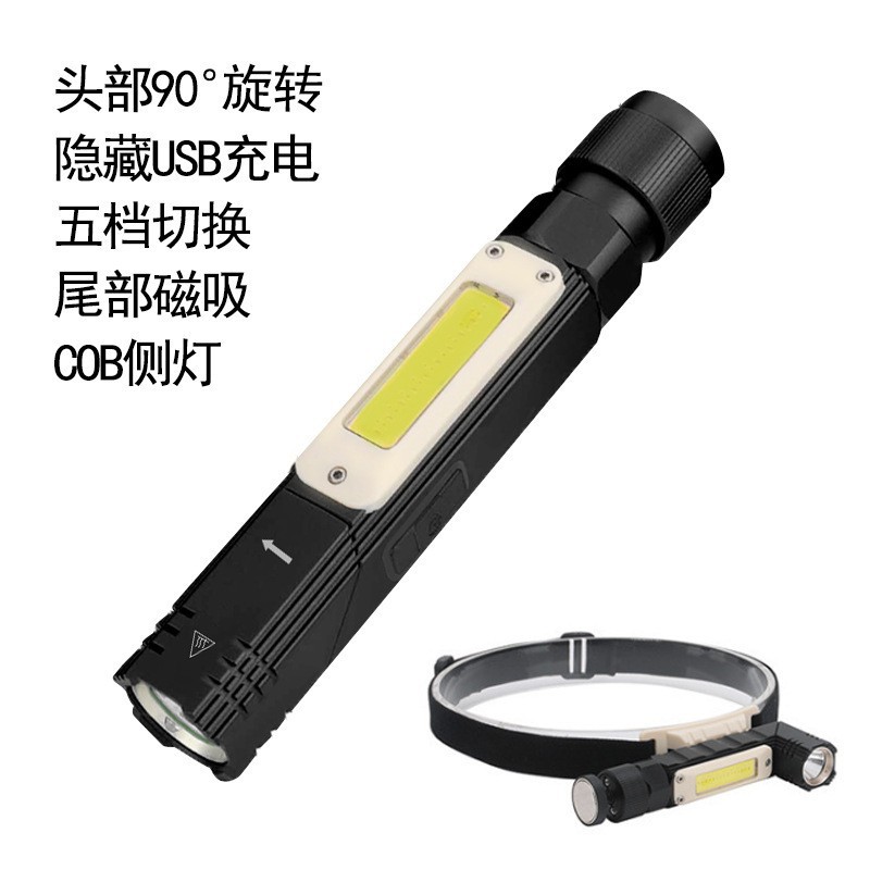 国境を越えた売れ筋の強力な光懐中電灯 USB 充電式多機能 COB ワークライト 90 ° 折りたたみ式磁気アクセスライト