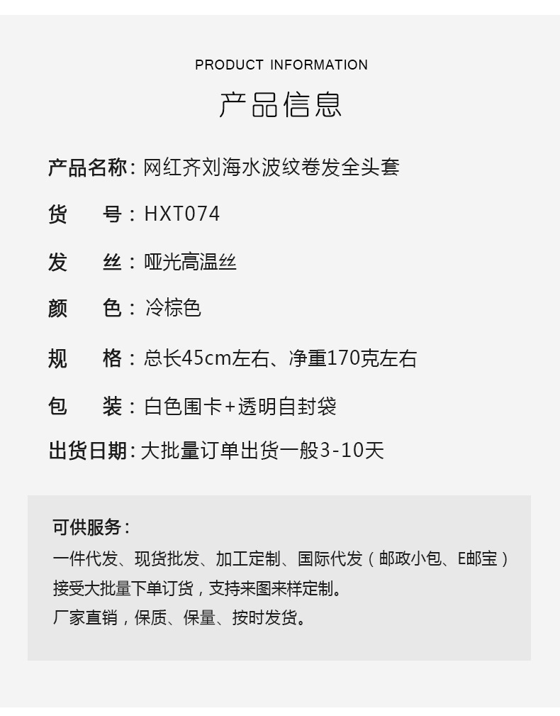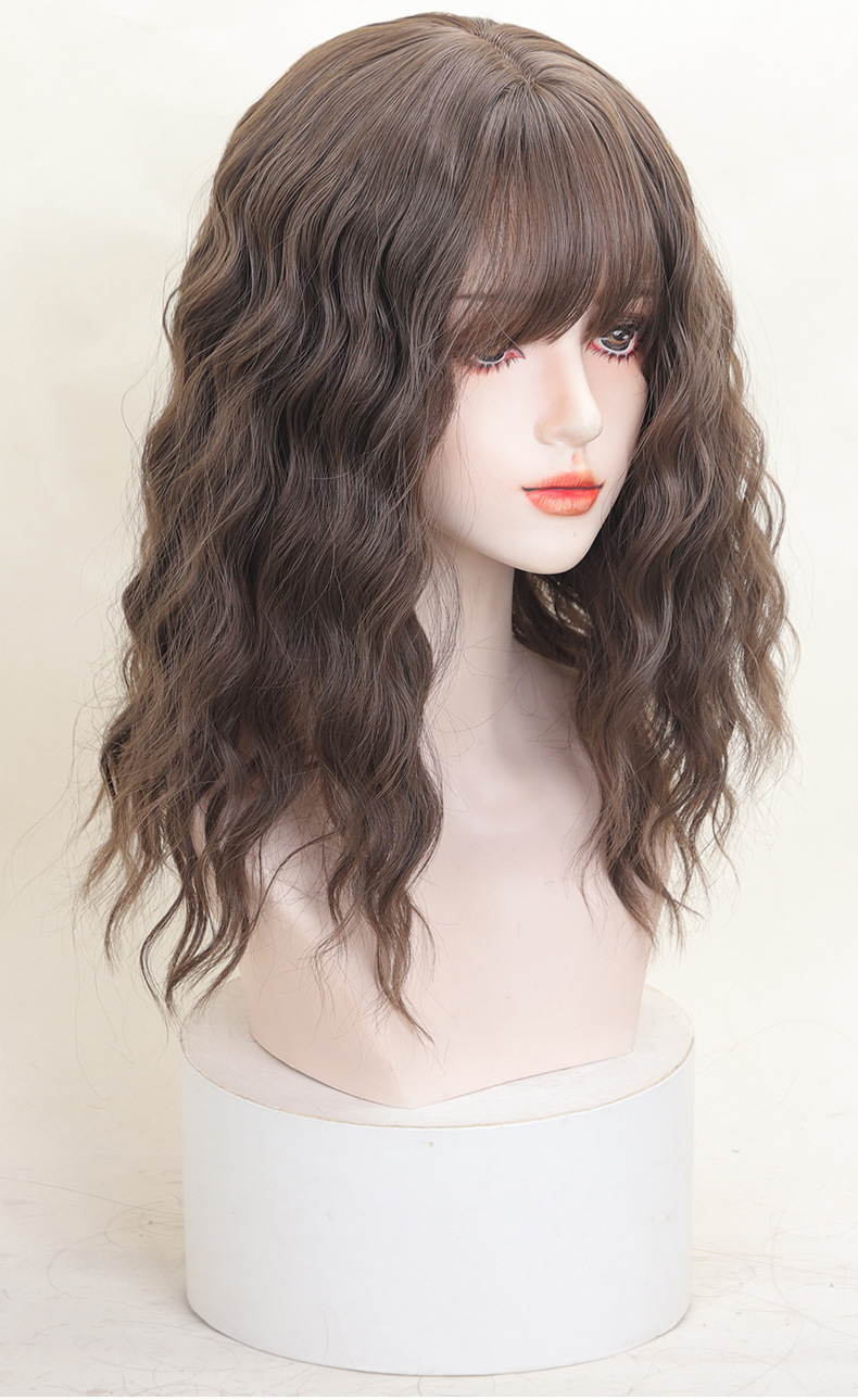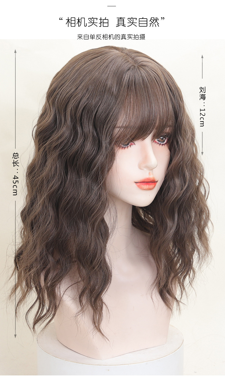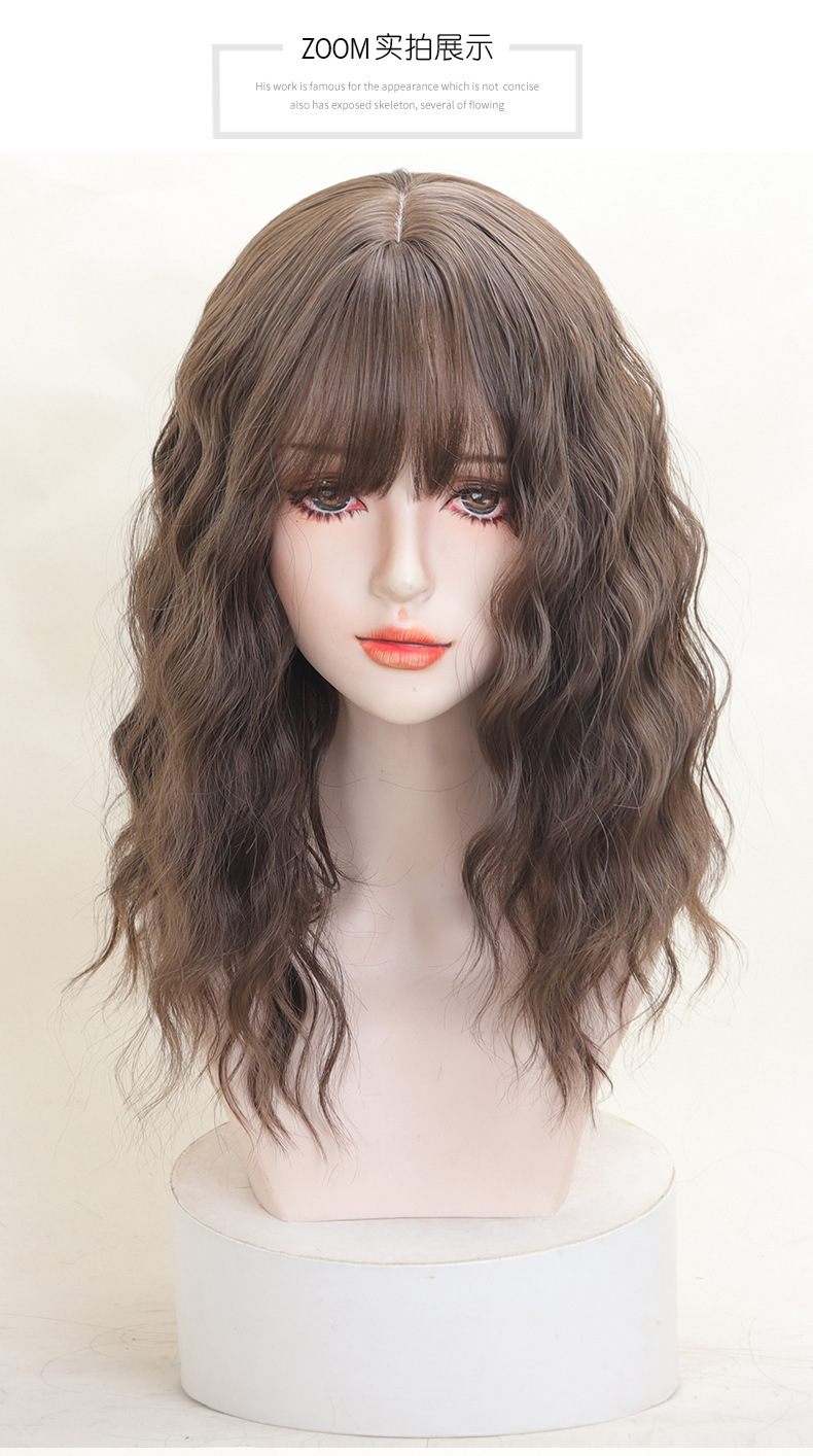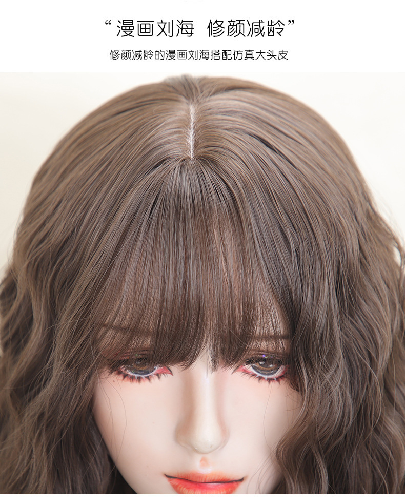 ファッション百合梨花巻かつら女性の全頭セット式漫画前髪lolitaは肩をそろえてふわふわした水の波紋を出している