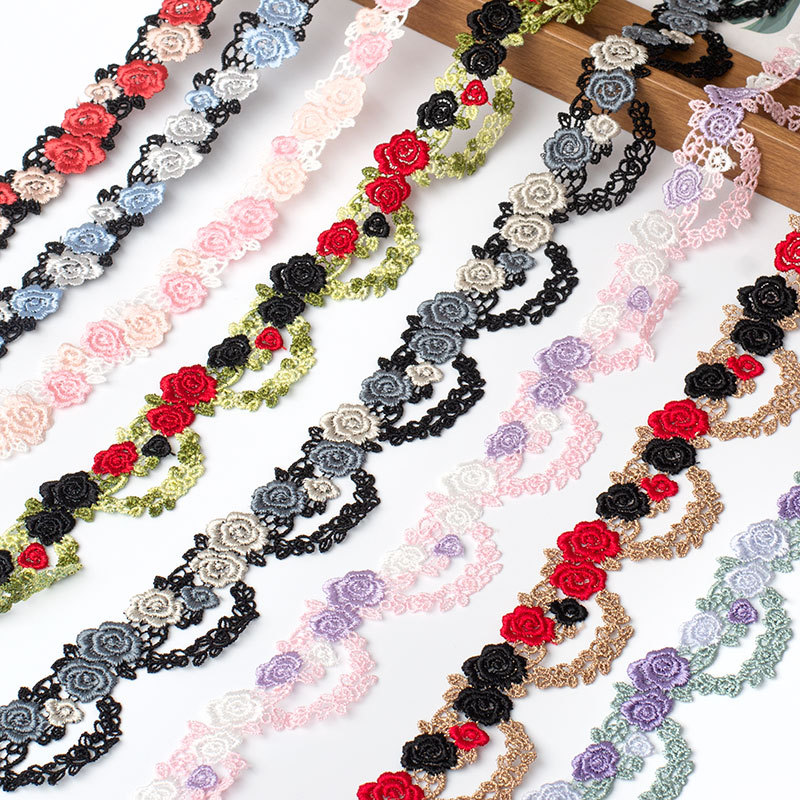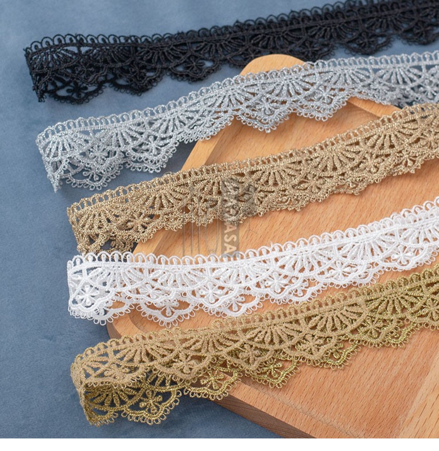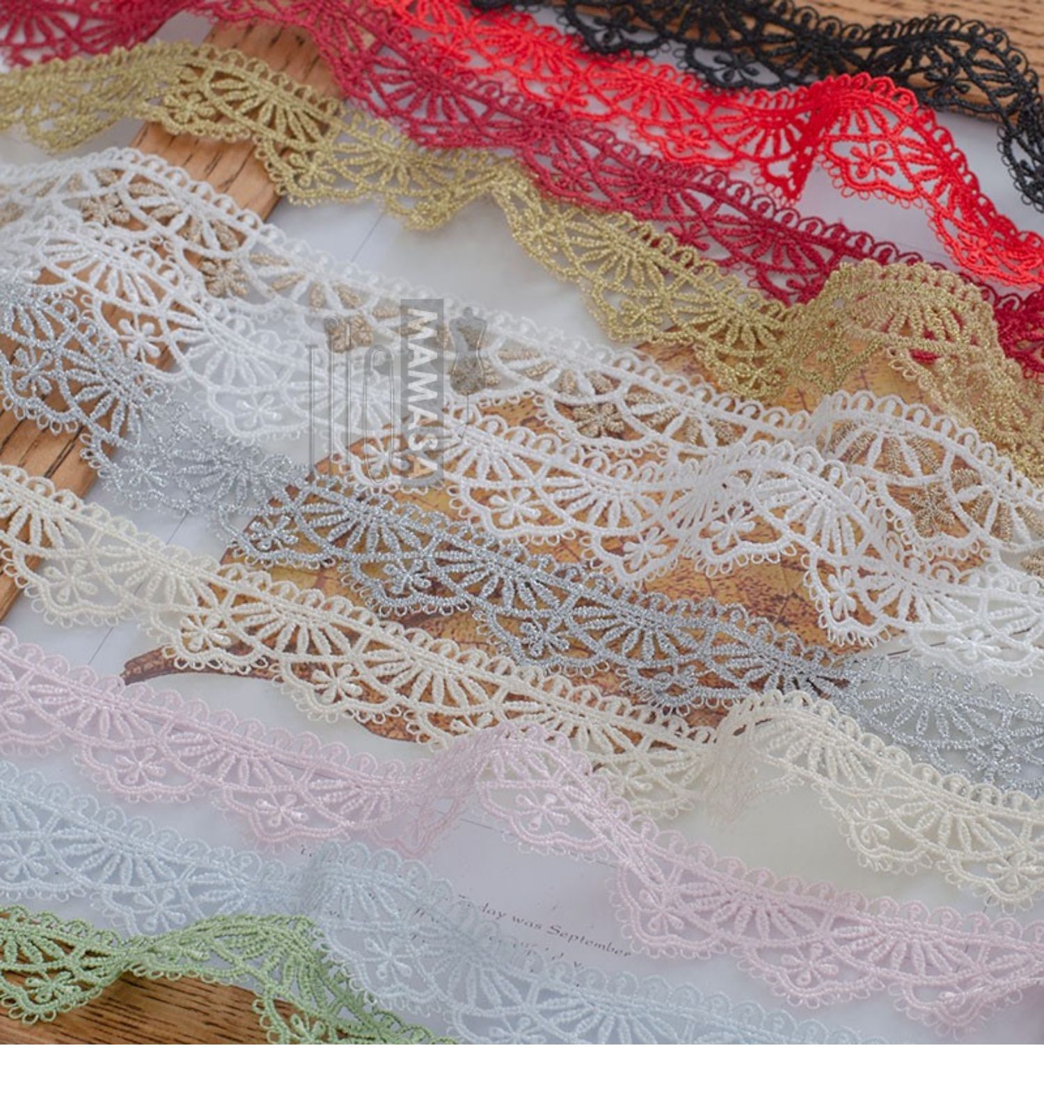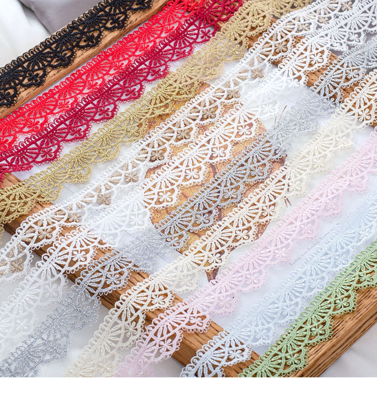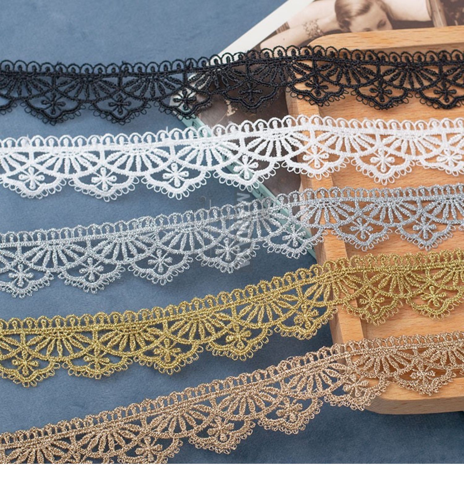 卸売り幅2.5cmカラー金銀ポリエステル糸刺繍水溶レースlolita手作り装飾レースメーカー