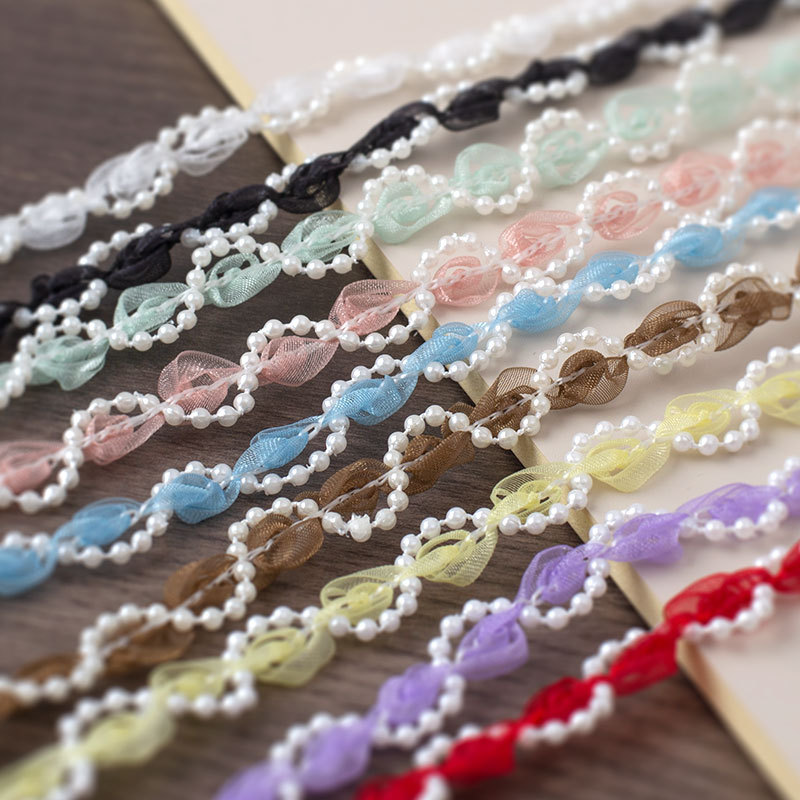 キャンディカラーツイスト真珠ガーゼ付きレースDIY手作り服バッグ布芸補助材料多色レースリボン