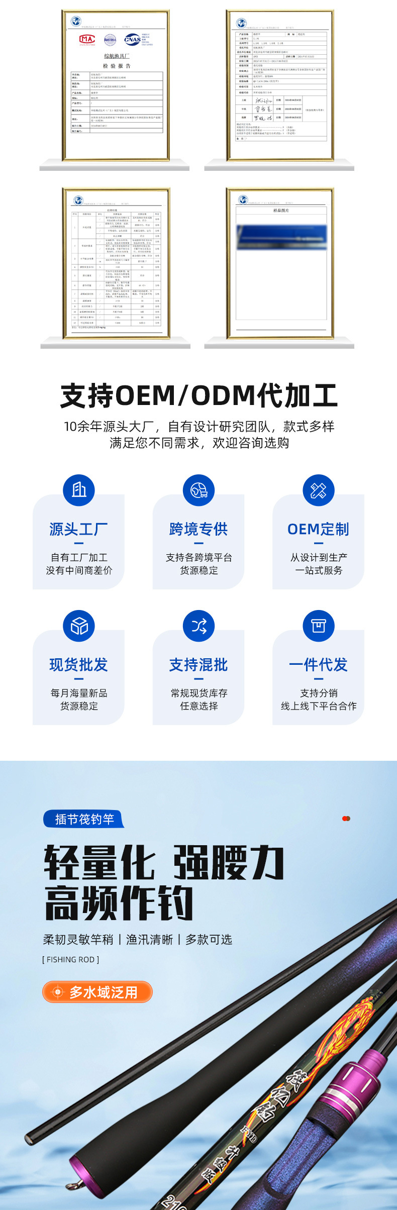 卸売りガラス鋼いかだ竿セット挿入弁棒遠投竿は鋭敏で柔らかい1.3 1.5 1.8 2.1釣竿