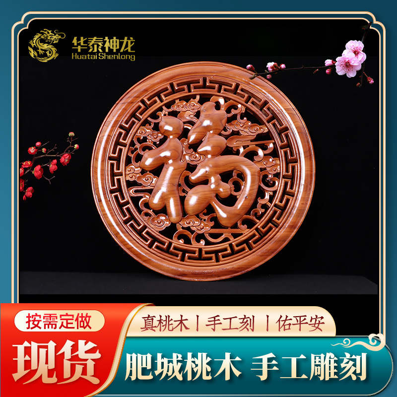 桃木の福の字は皿の家庭の木彫りの工芸品の形の百福図を掛けて新しい部屋の客間の装飾の贈り物の卸売りを移転します。