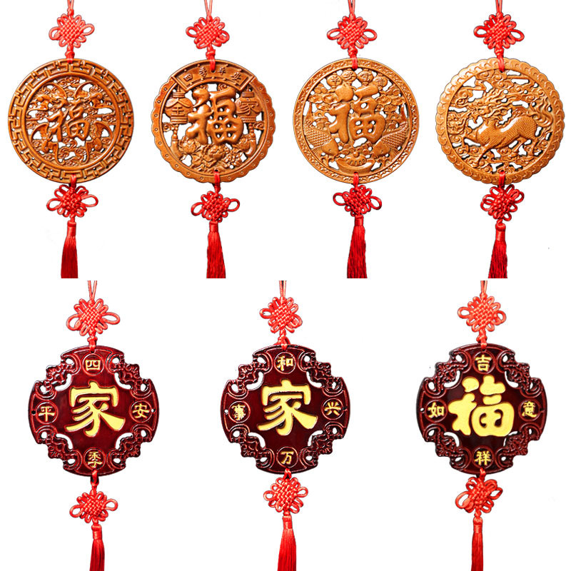 松木中国結び大ストラップ客間風水福字家庭玄関ジョー移転祝礼木彫り壁掛け工芸アクセサリー