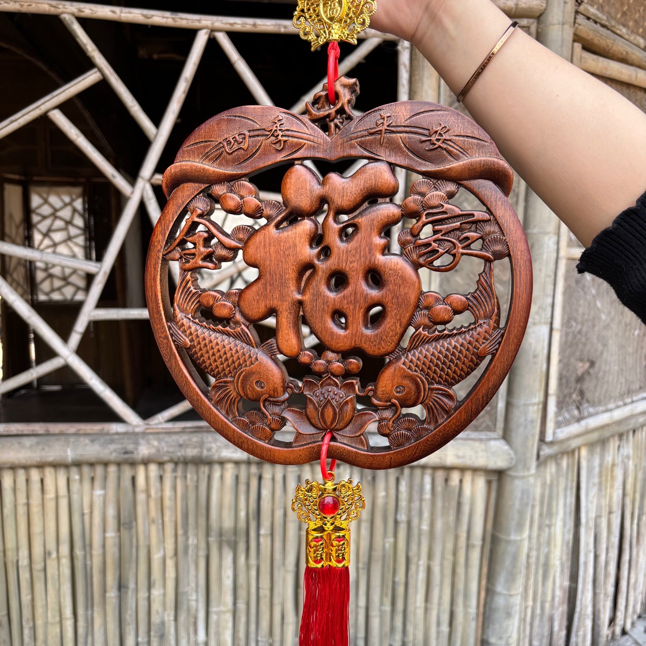 香樟木福字中国结挂件鱼麒麟小号木饰送礼木质工艺品小件摆件雕刻