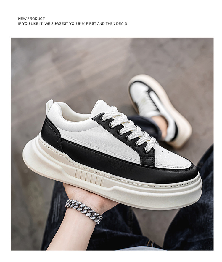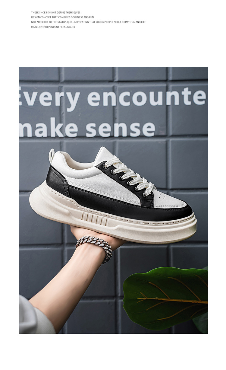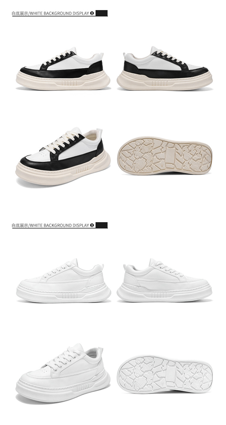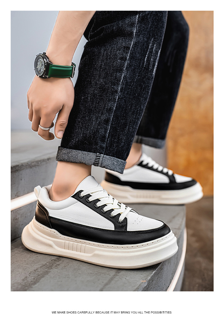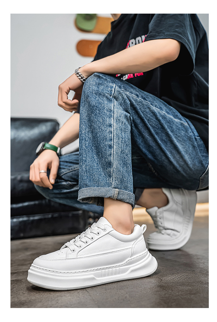 2025年春の厚底白スニーカー、幅広フットカット、耐摩耗性、メンズカジュアルシューズ、トレンド感があり軽量です。