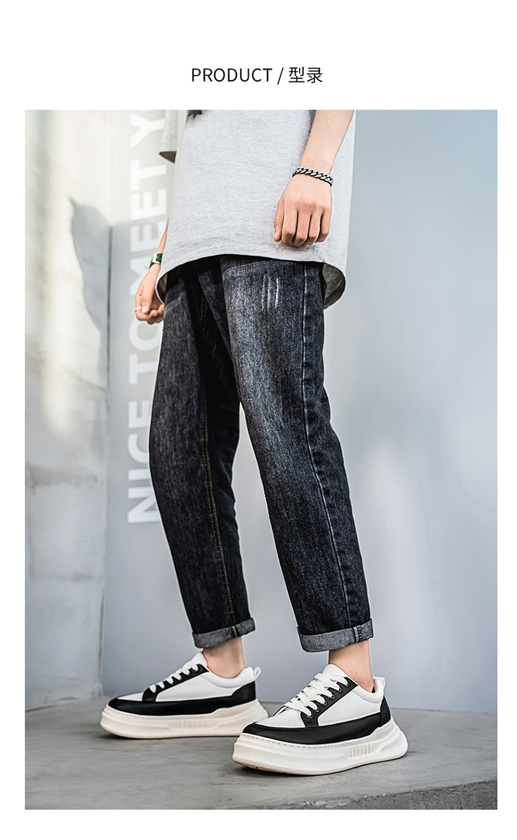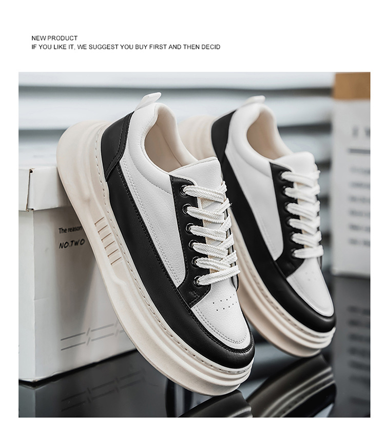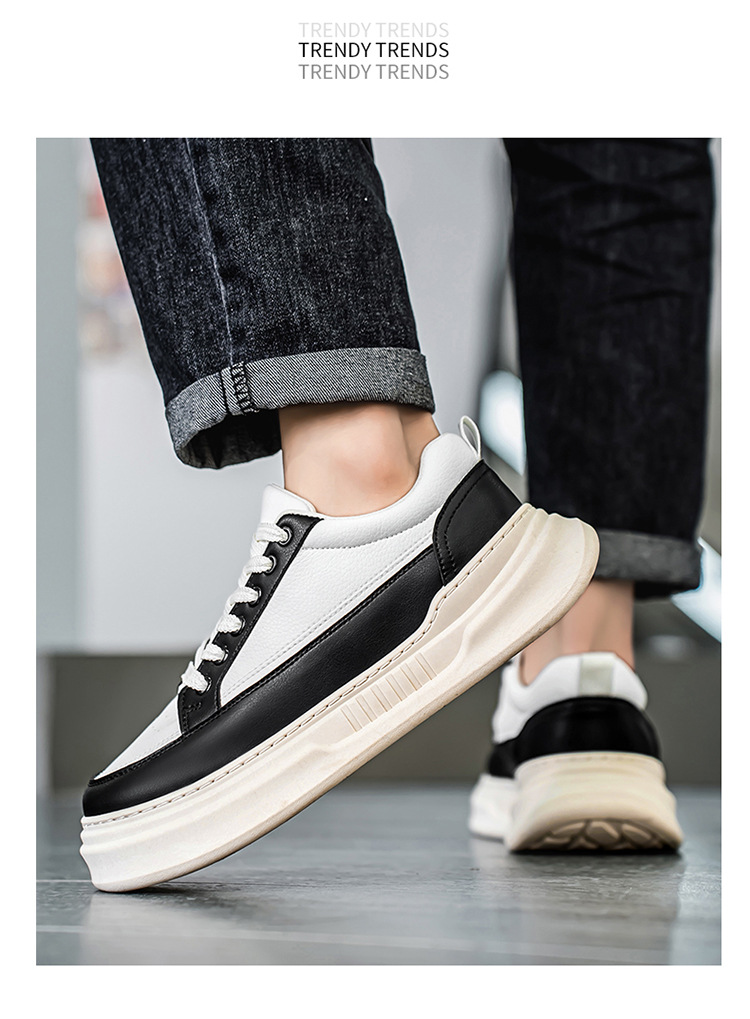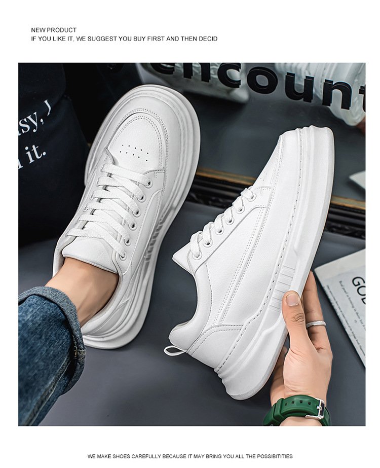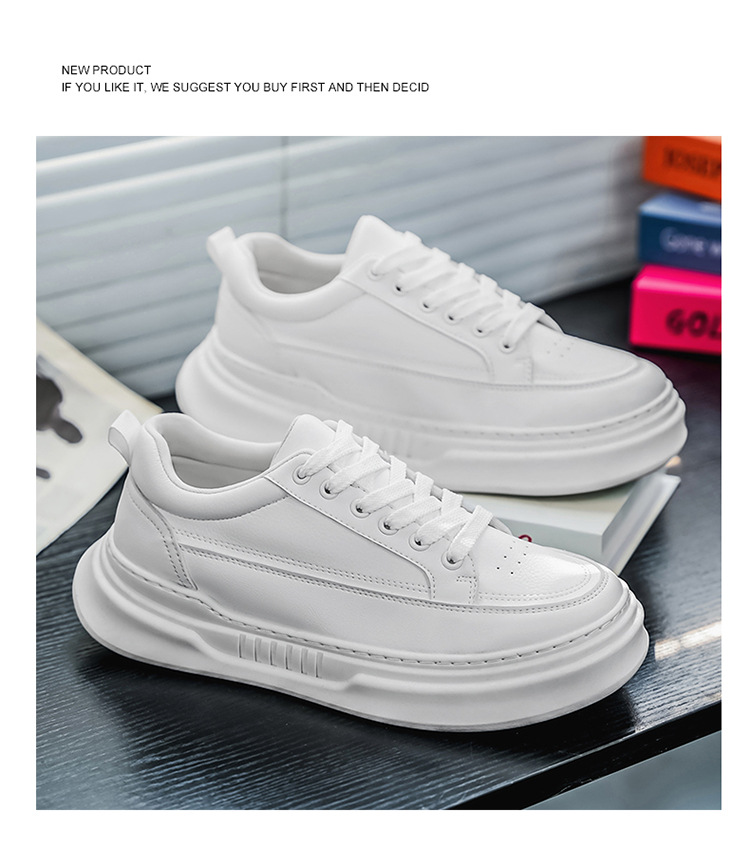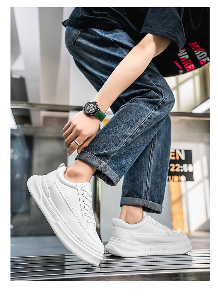 2025年春 ワイドフィット 厚底 ホワイトスニーカー メンズ クロスボーダー スポーツカジュアルシューズ 身長アップ レースアップ 韓国風 カジュアルファッション