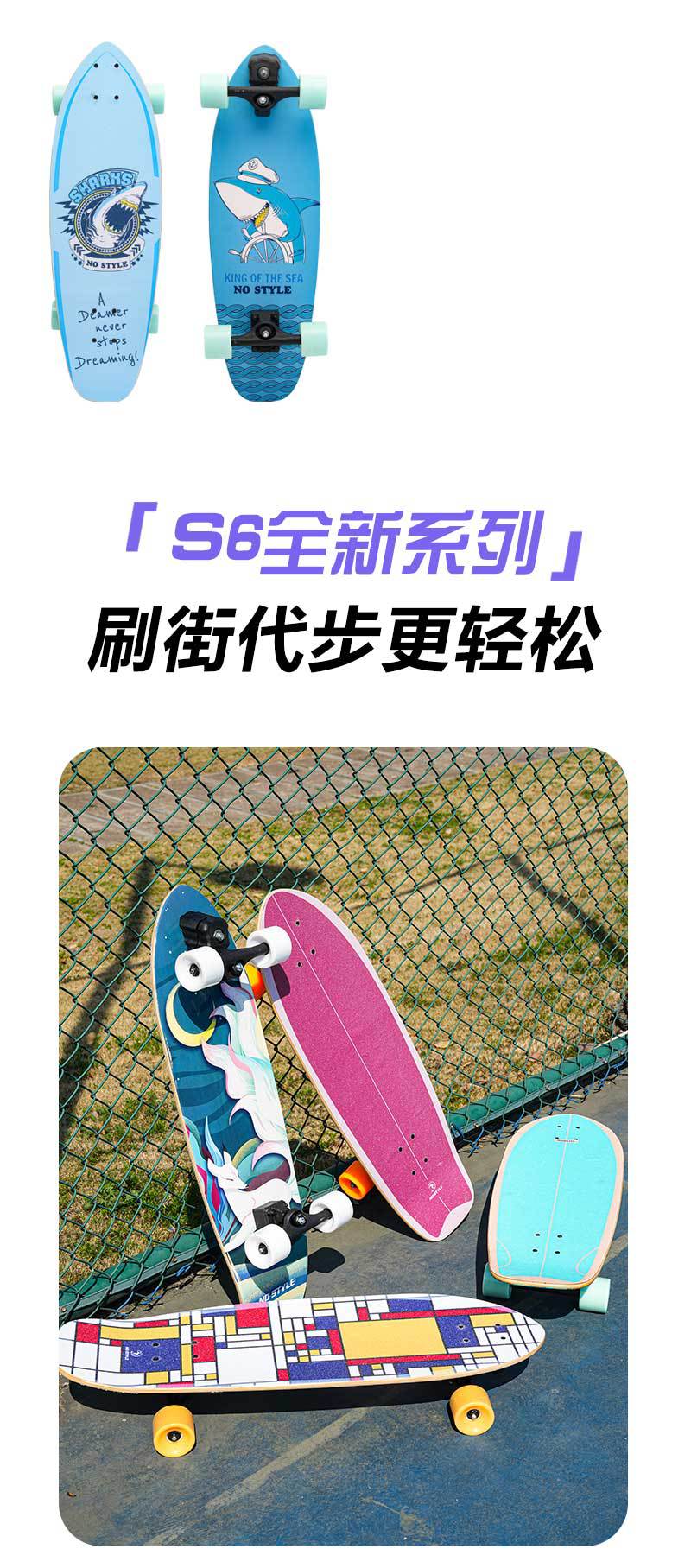 免蹬地路冲板S9弹簧桥陆地冲浪板青少年成人初学者专业滑板