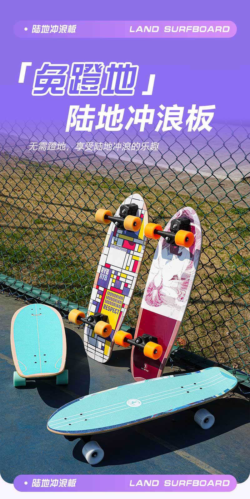 陆地冲浪板滑板碳素支架深脚窝设计初学者男女成人专业刷街代步滑