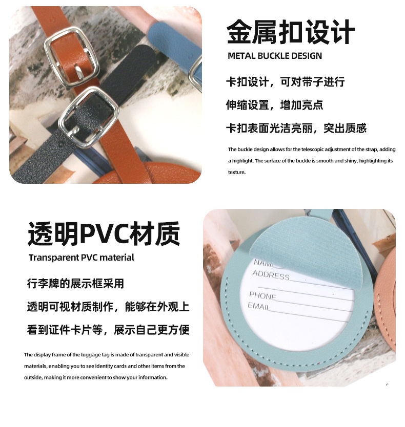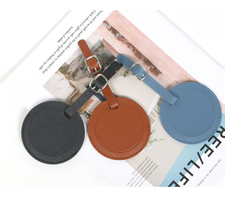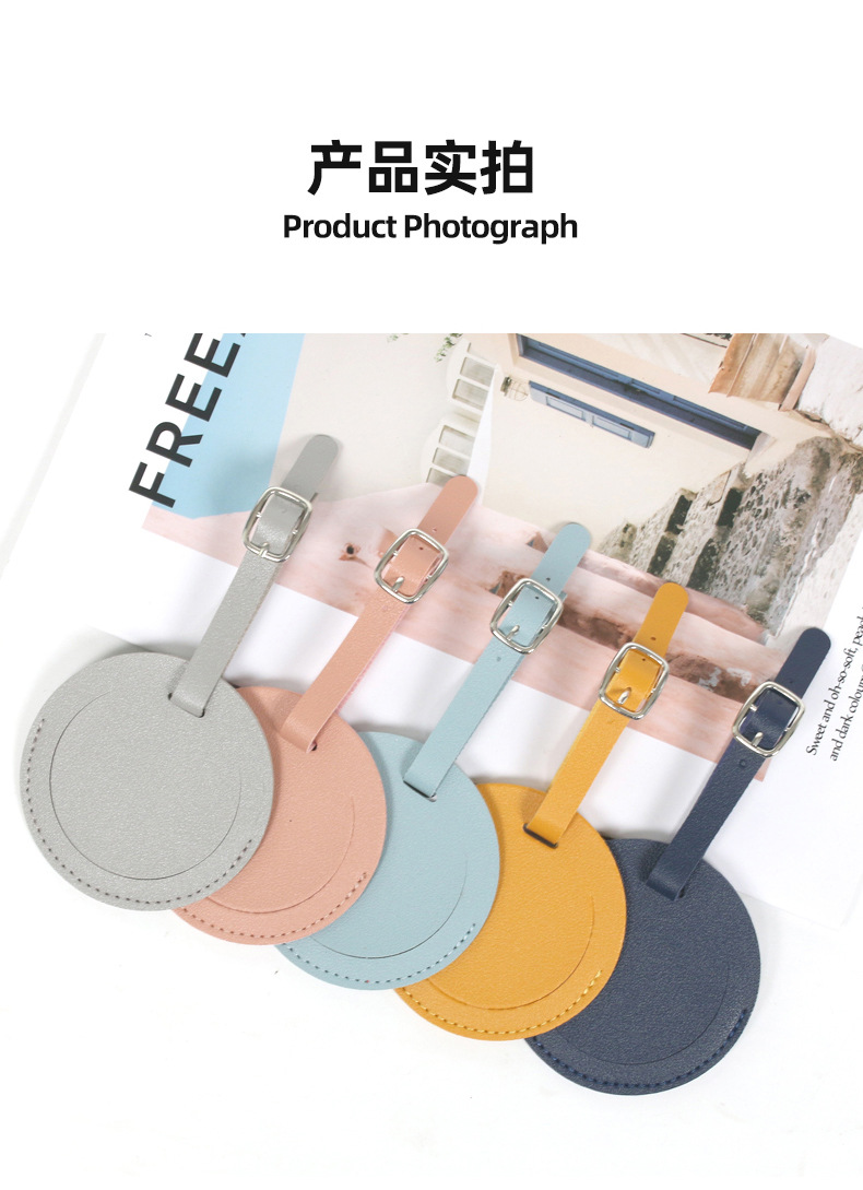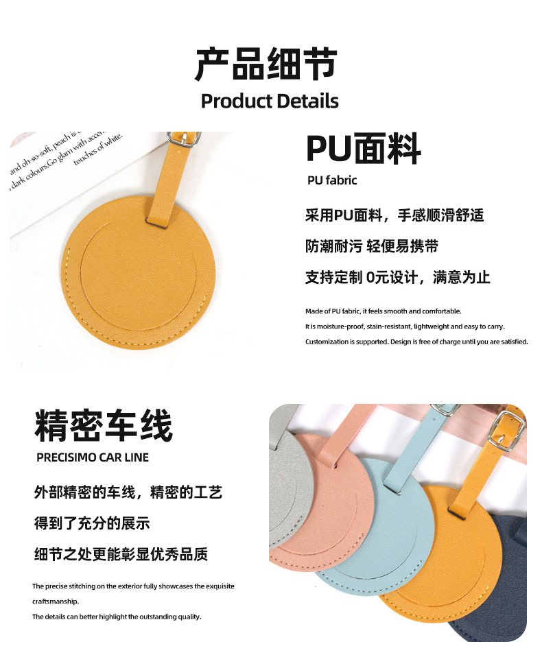 可定制圆形防盗飞机牌PU皮革行李牌多色身份牌外出便携行李箱铭牌