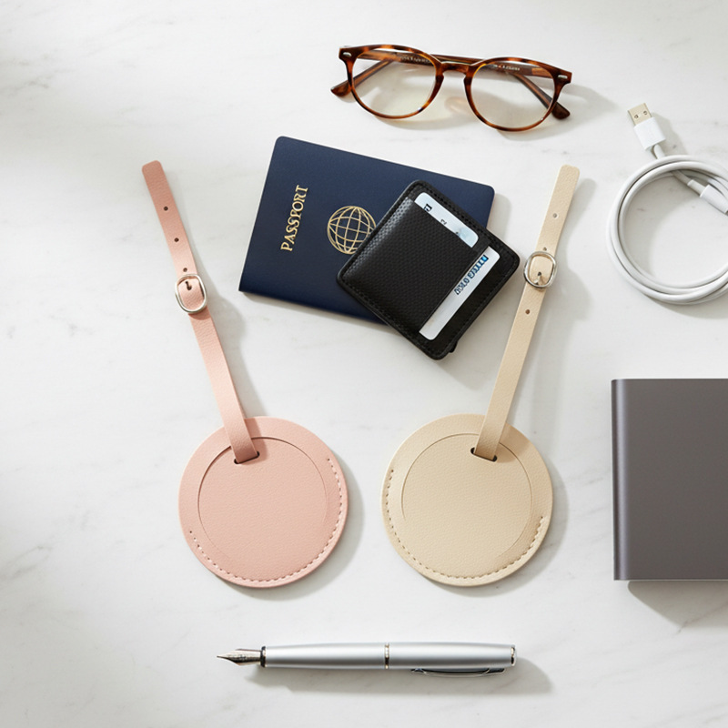 高品质圆形行李牌旅行箱登机牌隐藏式皮质挂牌吊牌识别牌可加logo