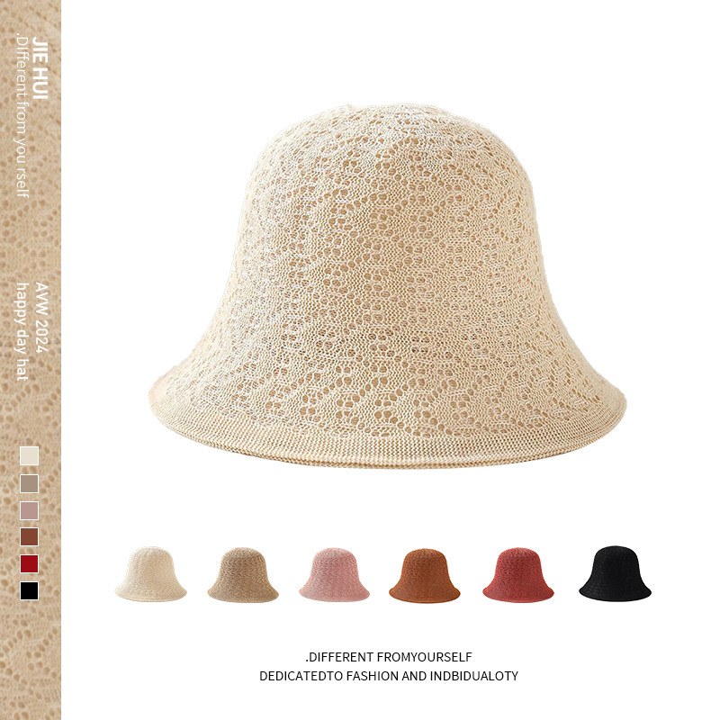 夏のファッションは透かし彫りのバケツの帽子を編みます。