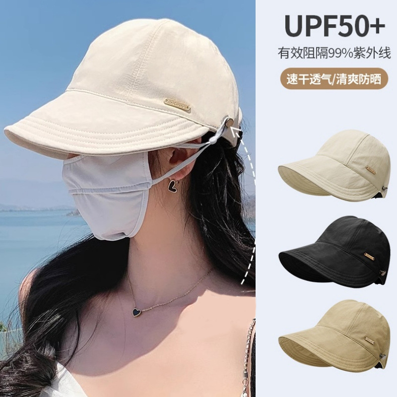 両面uvカット空トップ日焼け止めキャップレディース夏ホワイト折りたたみサンシェードシェルキャップビッグヘッド太阳の帽子